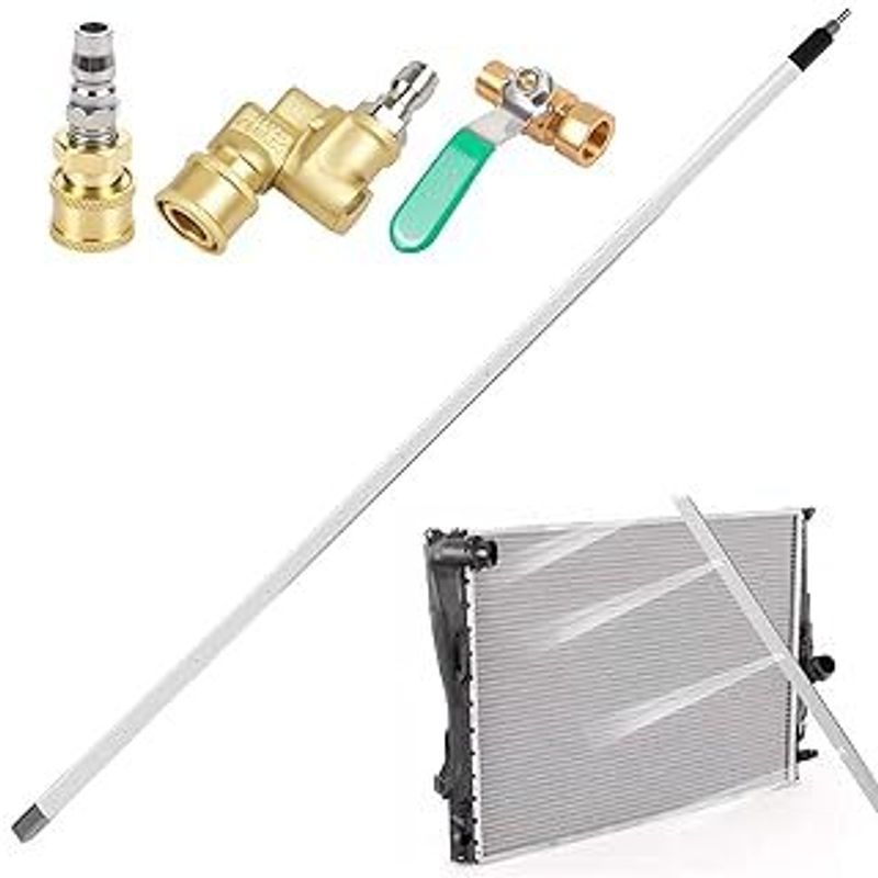 Tags: 1/4 Inch Quick Coupler, 304 Stainless Steel Wand, 43 Inch Radiator Cleaner, 4500 PSI Pressure Washer Tool, 5-Hole Fan Nozzle, Aluminum Radiator Tool, Car Radiator Washer, Condenser Cleaning Wand, DIY Mechanic Tools, Engine Overheating Prevention, Heavy Duty Cleaning Wand, High Pressure Flush Tool, HVAC Coil Cleaner, Portable Power Washer Attachment, Radiator Cleaning Wand, Radiator Flush Tool, RV Cooling System Tool, Truck Radiator Cleaner, Underbody Cleaning Wand, Vehicle Cooling System Maintenance