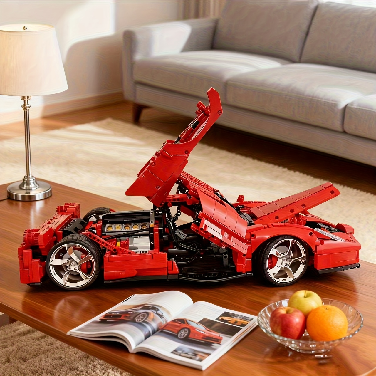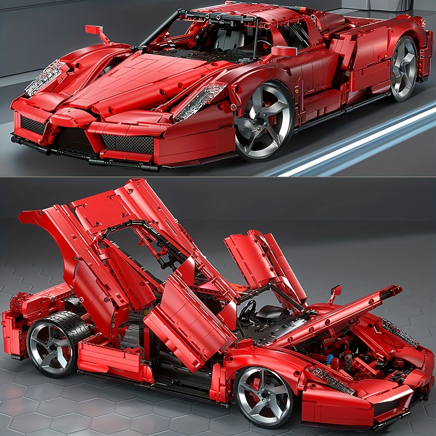 4301pcs 1:8 Red ENZO Racing Car Building Toy | Cool Model, Tech-inspired Design, Easy To Assemble, Collectible For Racing Fans, Ideal Birthday Gift For Boyfriend, Festive Gift For Christmas/Thanksgiving, Car Model Building Set, ABS Material