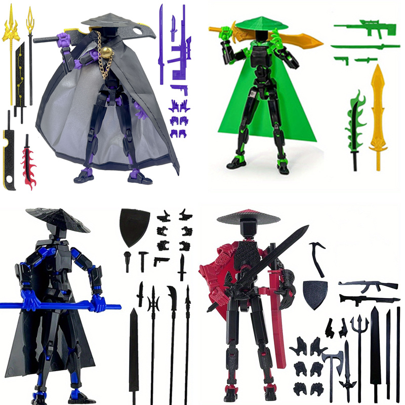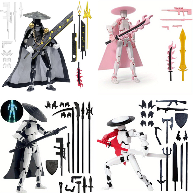 4pcs 3D Printed T13 Xiake Style Dolls – Multi-Joint Poseable Action Figures with Chibi-Style Face & Collectible Outfits, Flexible Movable Limbs for Desktop/Chassis Display – Suitable for Birthday/Holiday Gifts (Multi-Color Options)