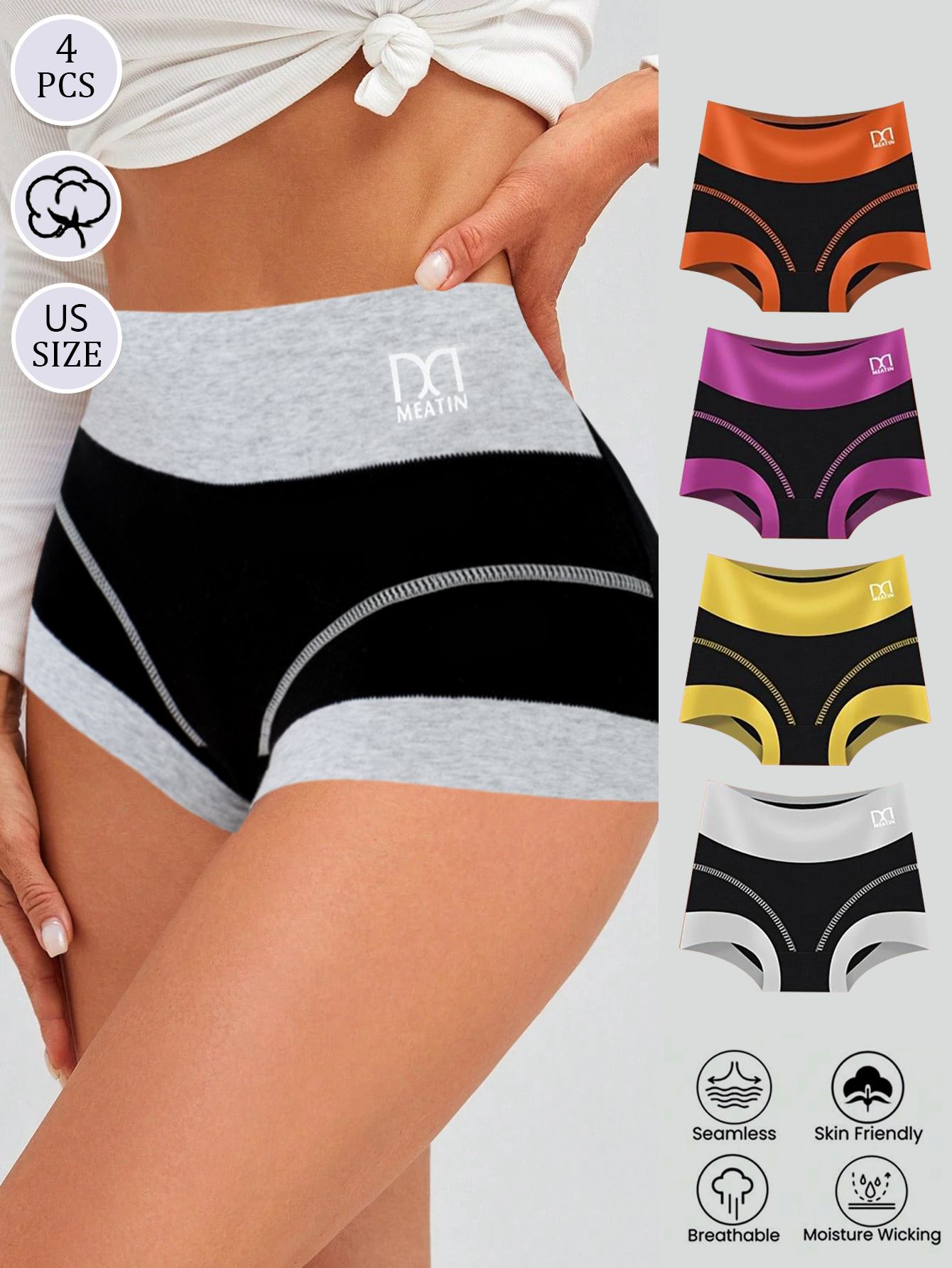 4pcs High-Waist Colorblock Bikini Briefs – Light Beige-Friendly, Comfortable & Breathable, Vibrant Color Block Design, Perfect for Halloween & Christmas Gifts, Elegant Style, High-Rise, Moisture-Wicking, Skin-Friendly Material, Ideal for Casual Attire, High Waisted Bikini