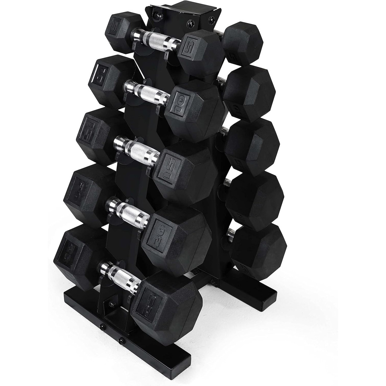 5-25Lb Rubber Coated Hex Dumbbell Set with A Frame Storage Rack Non-Slip Hex Shape for Muscle Toning, Strength Building & Weight Loss