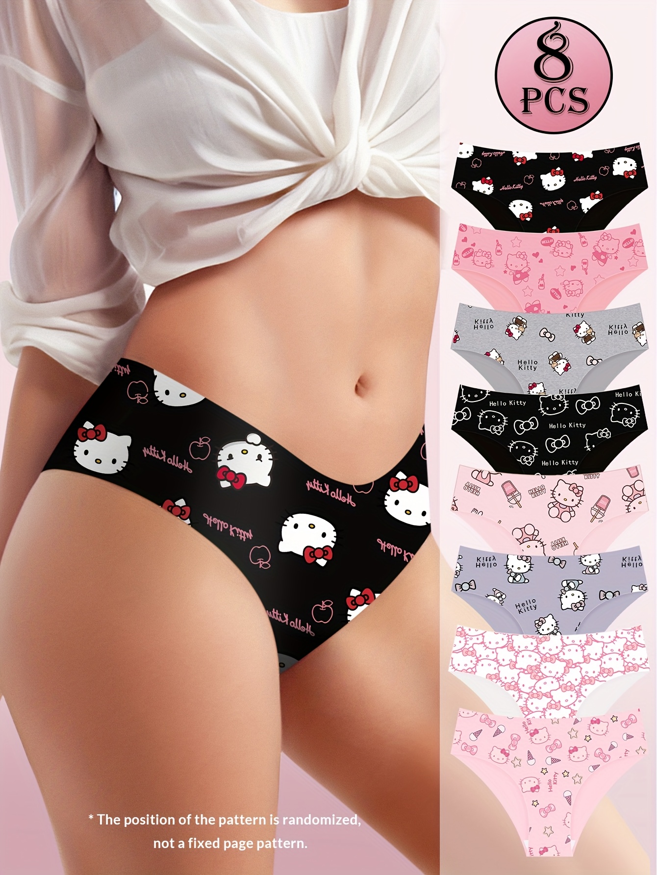 5/8pcs for Hello Kitty Low-Rise Seamless Briefs – Breathable Women’S Underwear, Cute Cartoon Design with Pink Hearts & Stars, Medium Support, Comfort Fit for Casual Attire, Cute Underwear, Playful Underwear