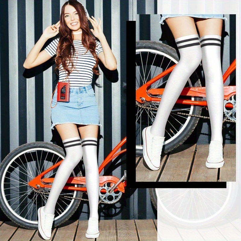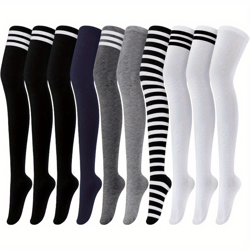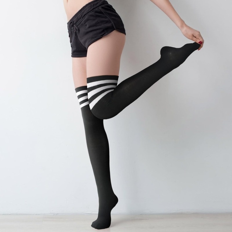5 Pairs Heavy-Duty Compression Over-the-Knee Stockings with Extra-along Leg Guards (27.6″) – Anti-Slip Opening, All-Season Tights for Boots, Jeans, Cosplay, Casual Attire – Durable & Machine Washable – Available in Black, Navy, Gray