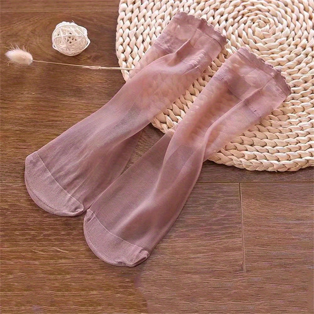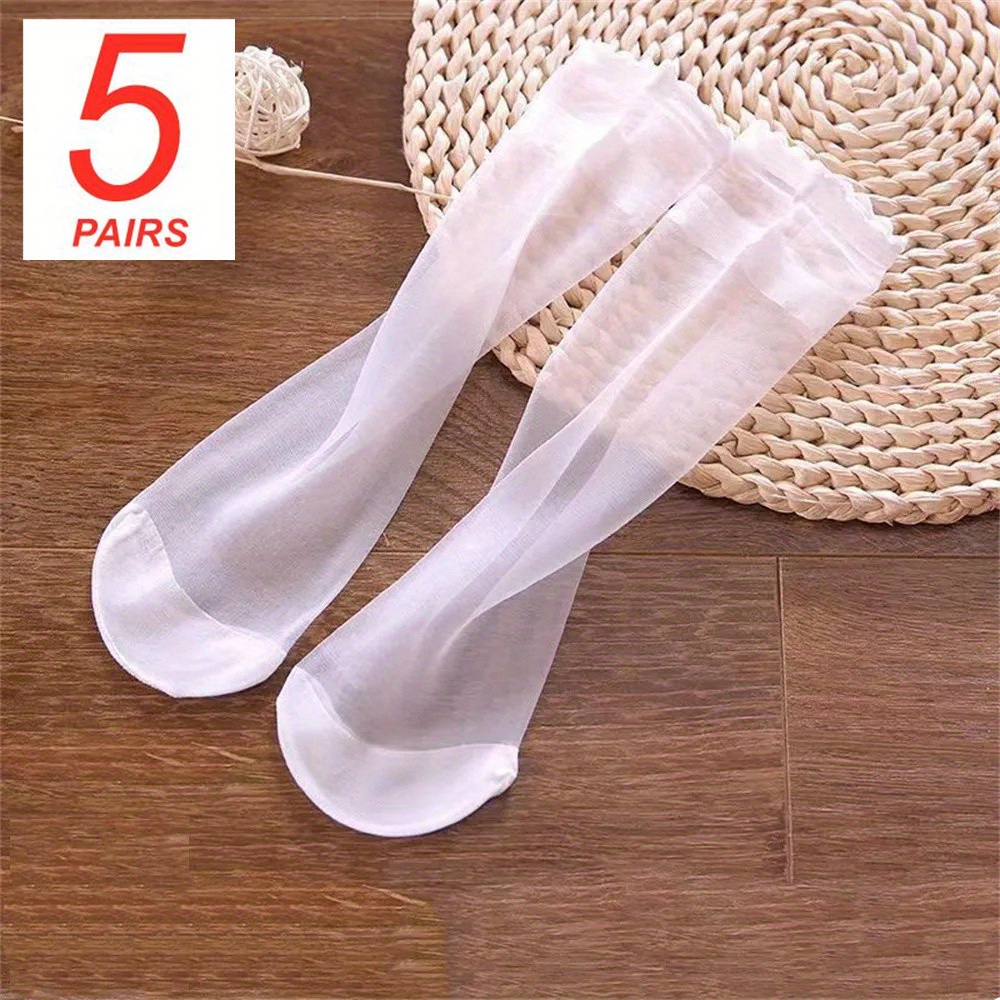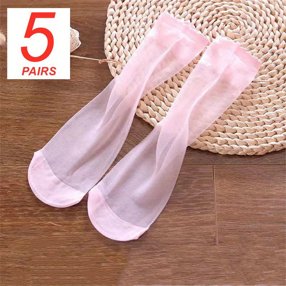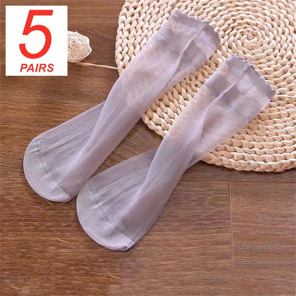 5 Pairs Spring Summer Thin Solid Color Stockings Comfortable Breathable Transparent Casual Color Mid-Tube Socks Suitable for Women’s Daily Wear Outdoor Sports Travel
