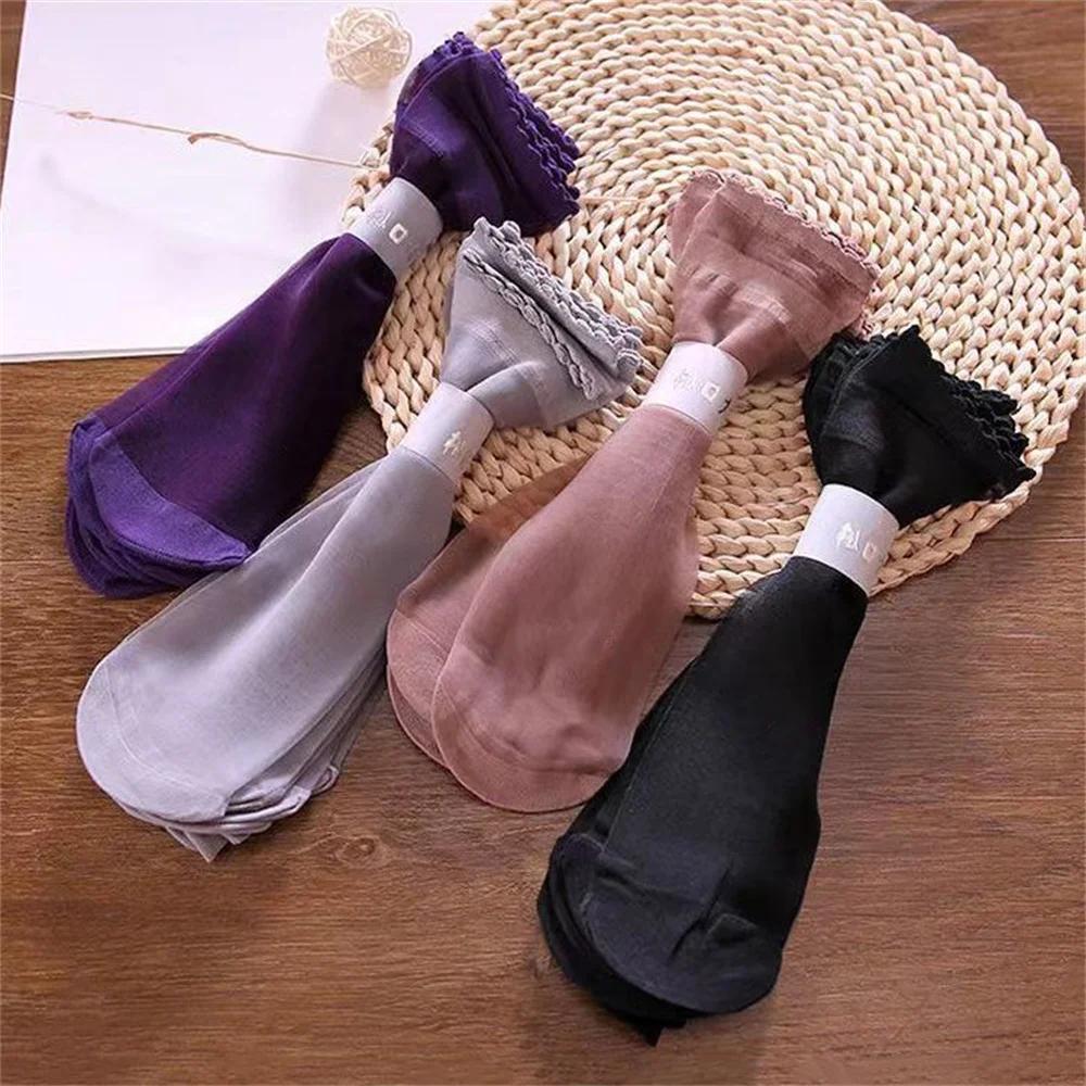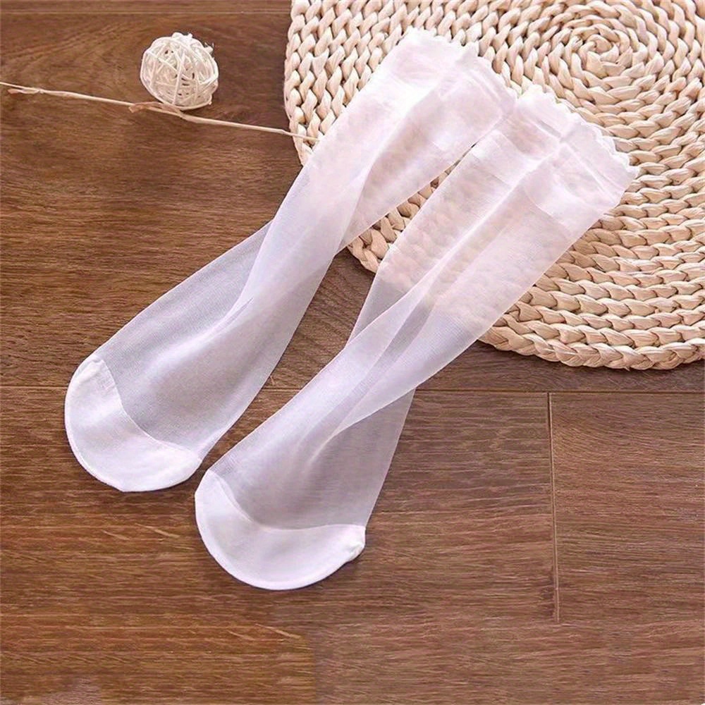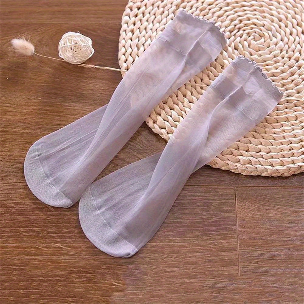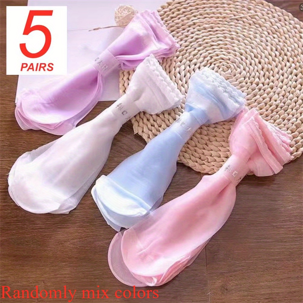 5 Pairs Spring Summer Thin Solid Color Stockings Comfortable Breathable Transparent Casual Color Mid-Tube Socks Suitable for Women’s Daily Wear Outdoor Sports Travel