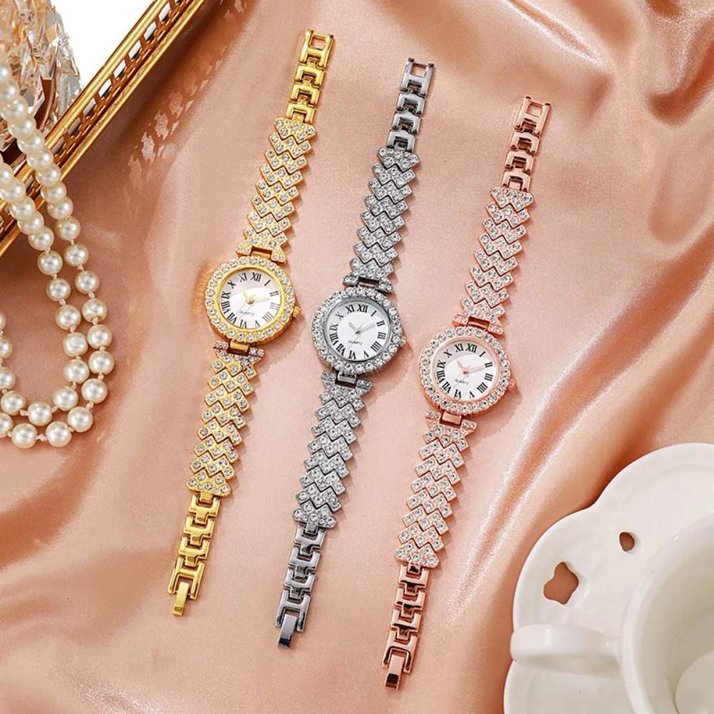 5pcs Elegant Women’s & Jewelry Set – Roman Numeral Dial Quartz Wristwatch with Matching Rhinestone Necklace, Ring & Earrings – Alloy Case & – Complete Accessory Collection for Weddings, Parties, Daily Wear – Luxury Gift