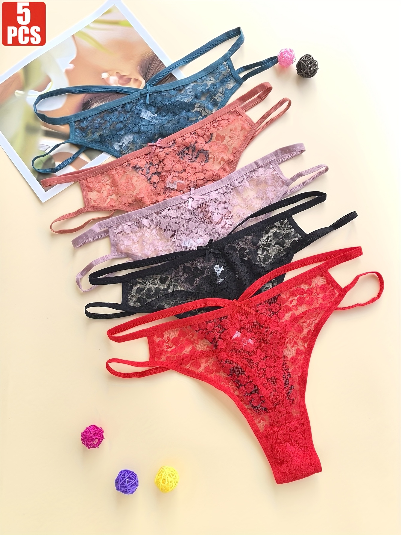 5pcs Plus Size Sexy Lace Soft Comfortable Women’s Panties Breathable Ladies Intimate Thong Underwear