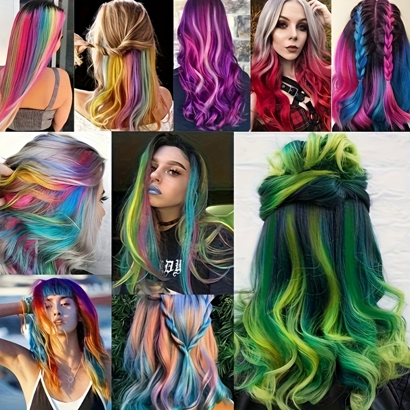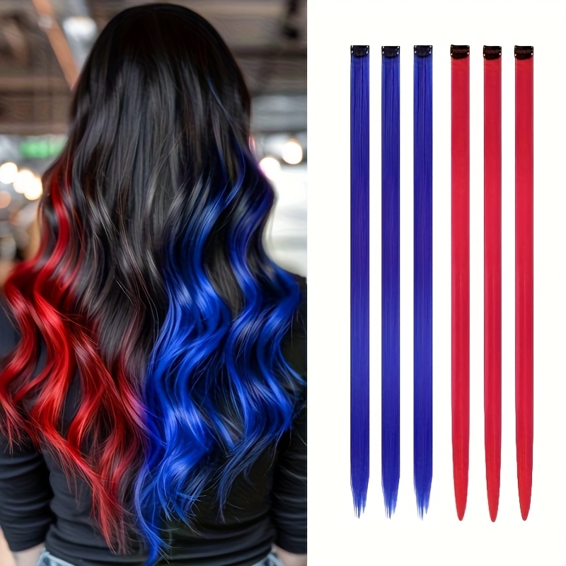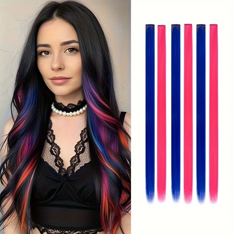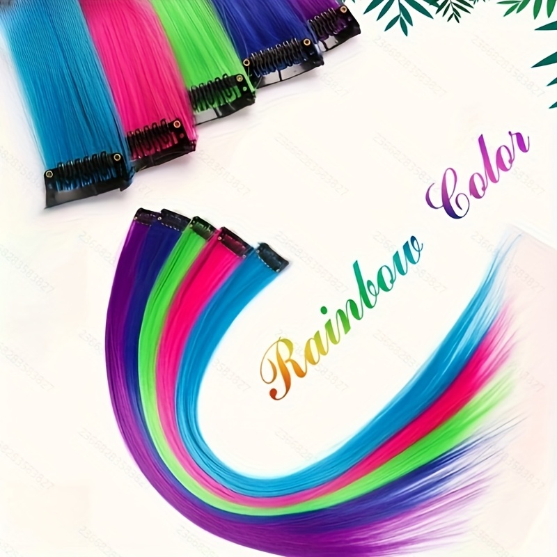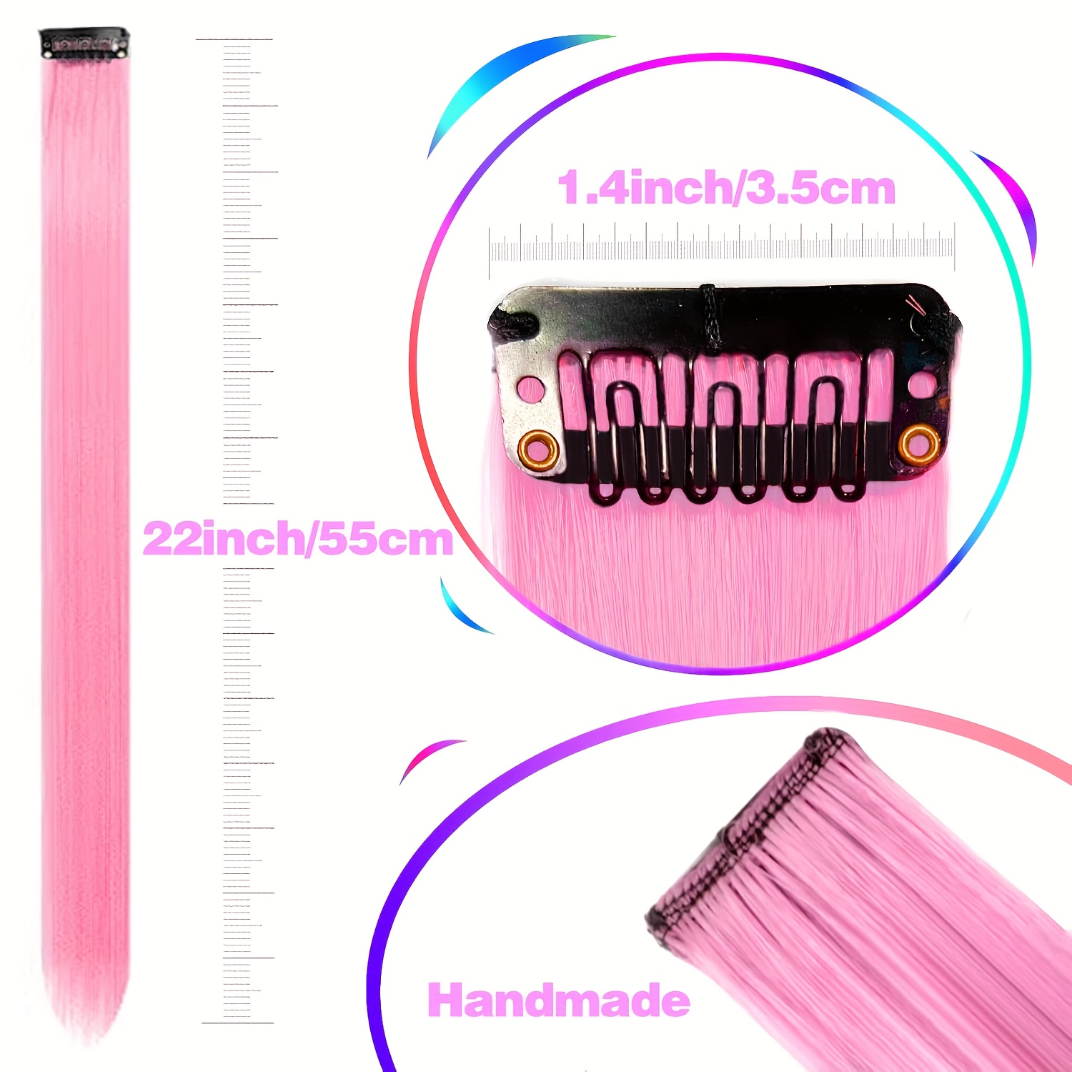 6 Packs 22 Inch Y2K Hair Extensions – Rainbow Pastel Neon Straight Synthetic Clip-In Wigs, No Glue Comfort Fit for Halloween, Christmas, Cosplay
