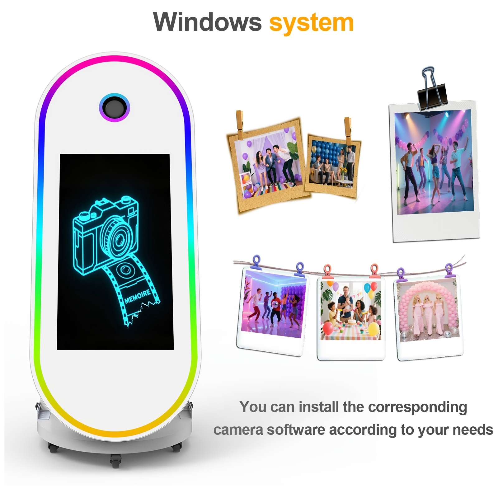 60-Inch Mirror and 32-Inch Touch Screen | White Portable Oval Large Selfie Magic Mirror Photo Booth Touch Screen LED Frame Compatible, USB Charging, ≤36V Operating Voltage