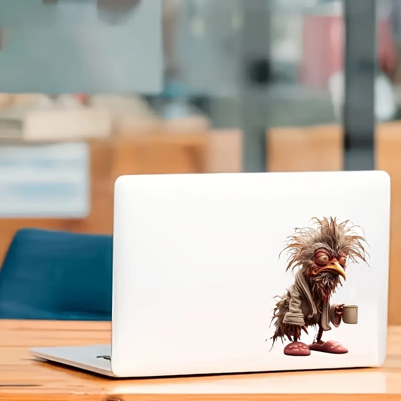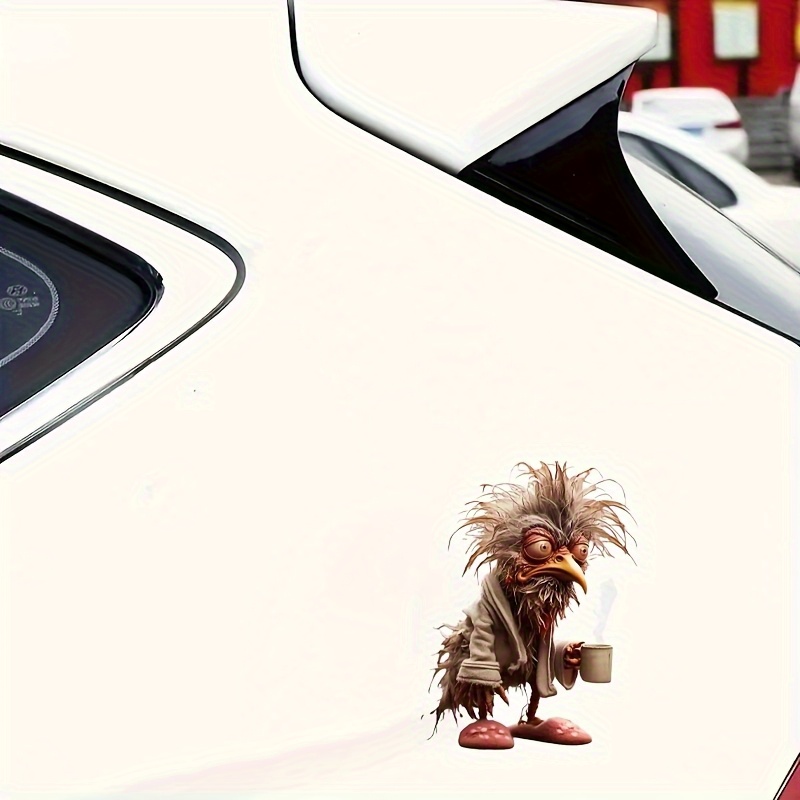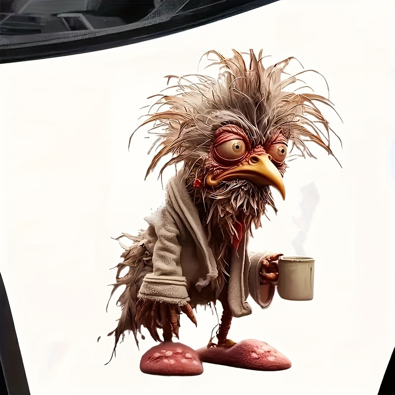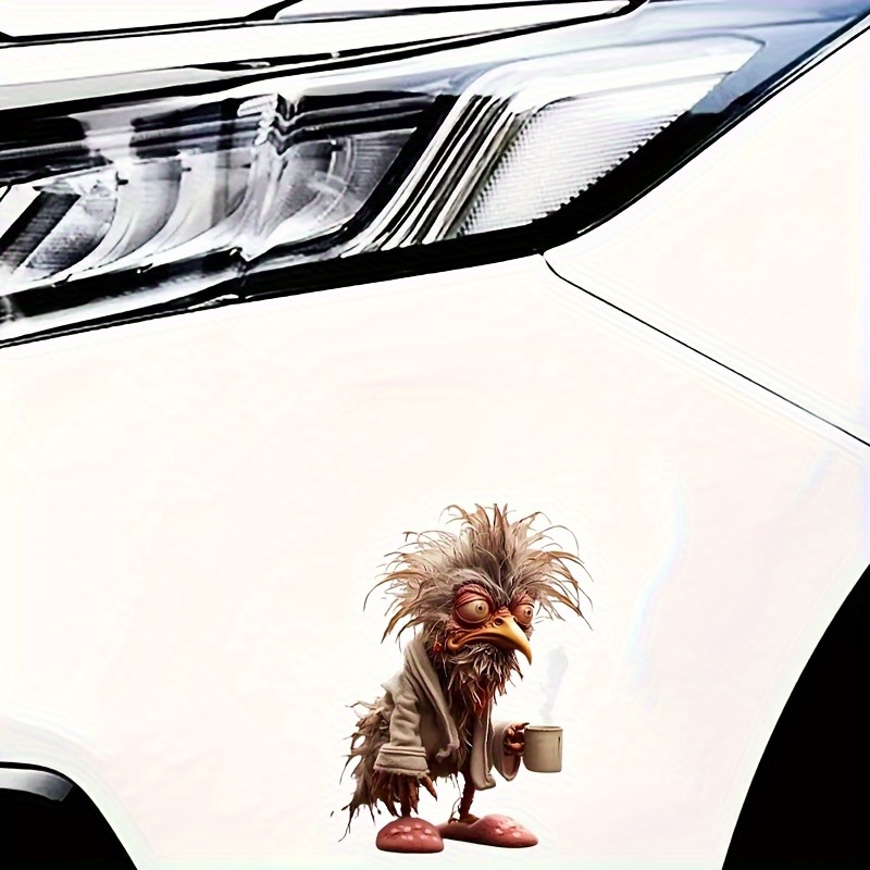 6inch Funny Coffee Chicken Vinyl Sticker- Bathrobe Slippers Cartoon Rooster Design, Self-Adhesive Glossy Car Sticker, Laptop, Bottle, Truck, Phone, Motorcycle, Window, Cup Fun Animal Fantasy Decoration, Glossy Effect| Bright colors
