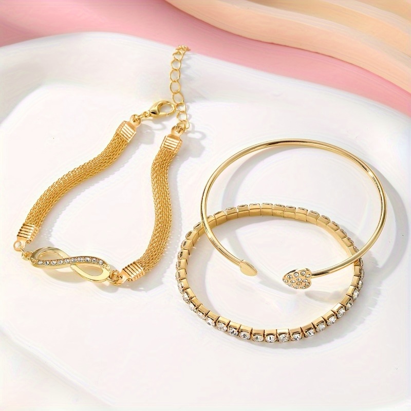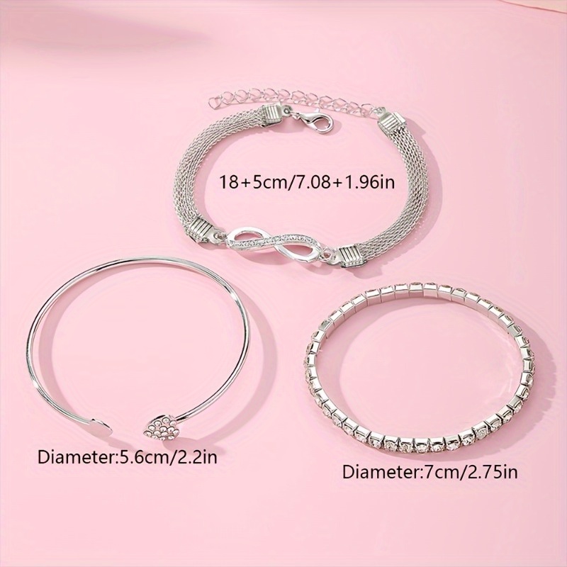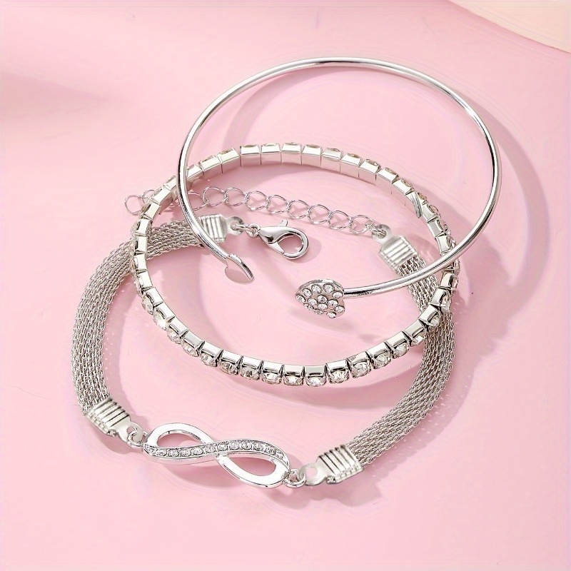 6pcs Elegant Exquisite Rhinestone Infinity Symbol & Heart Open Bangle Set for Women, Stackable for Parties, Dates, Gifts, Commuting, Christmas Fashion Jewelry Set