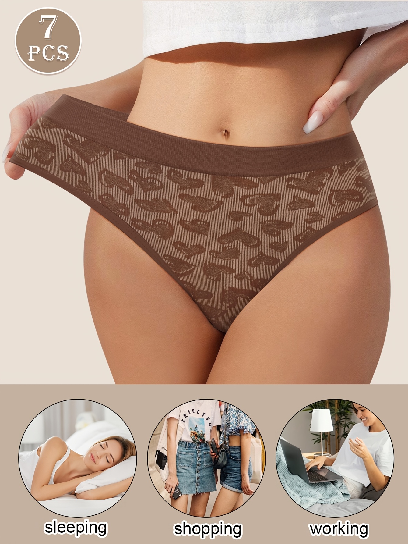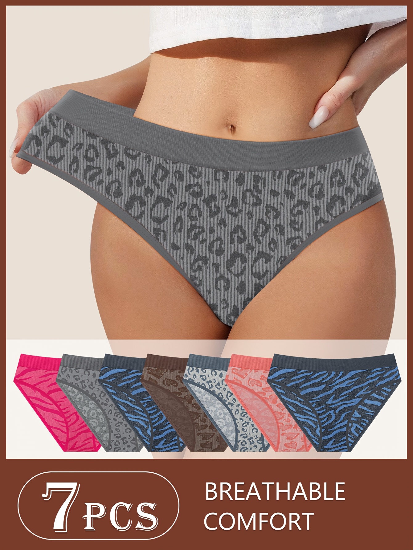 7-Pack Women’s Mid-Rise Printed Panties, Seamless Briefs, Comfortable and Soft Everyday Underwear
