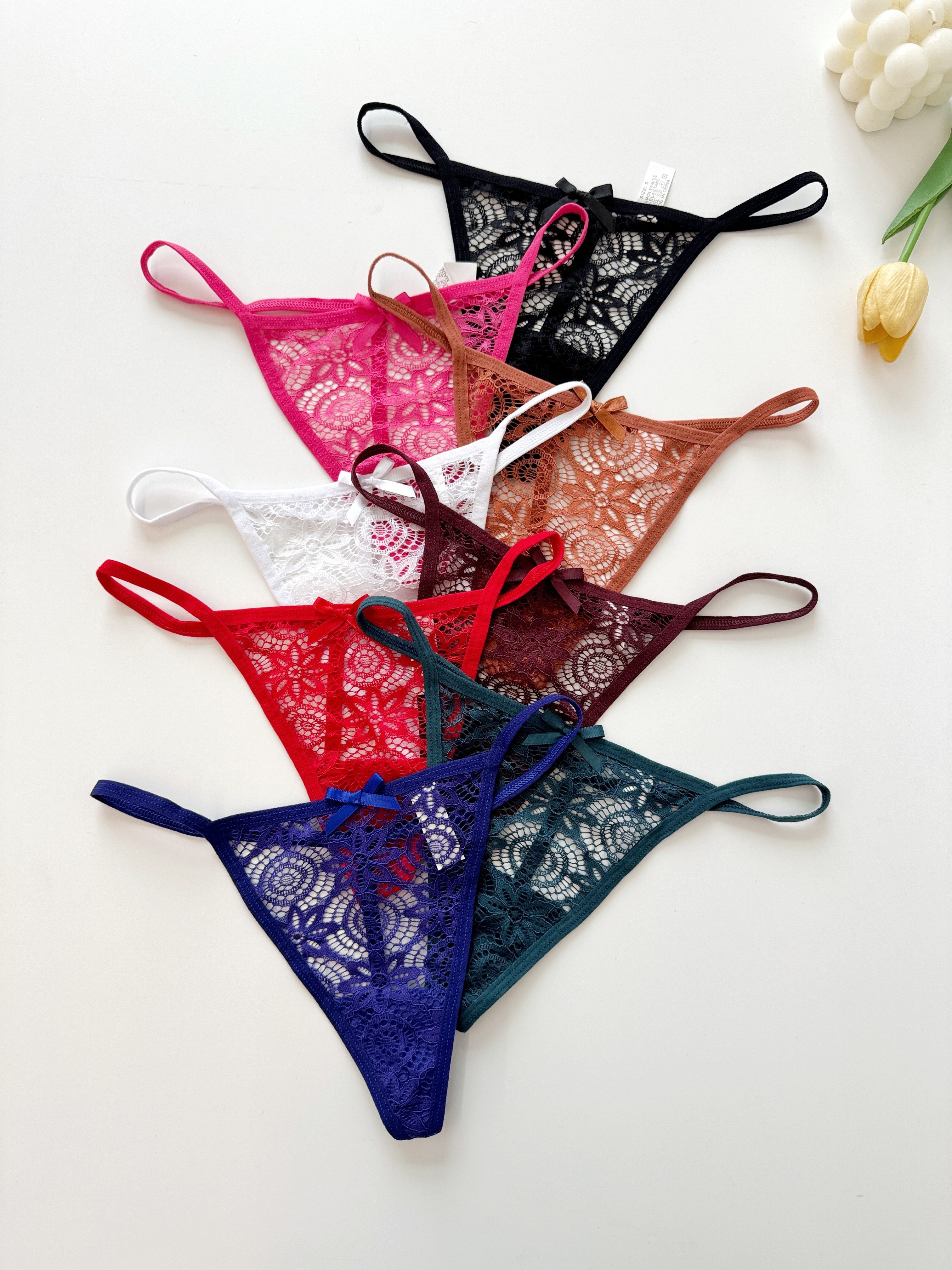 8pcs Women’s Low-Rise Thong Bikini Underwear – Sheer Lace Bow & V-String Panty with Semi- Comfortable Breathable Lingerie (8pcs) – Sexy Lingerie for Casual Attire or Special Occasions