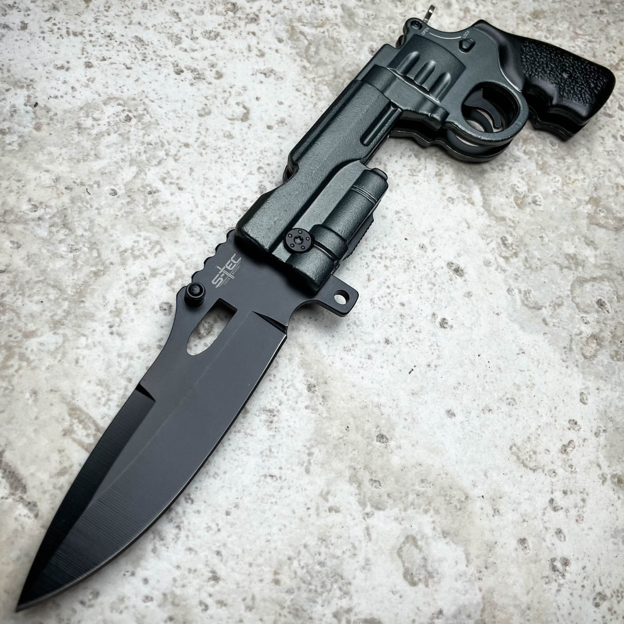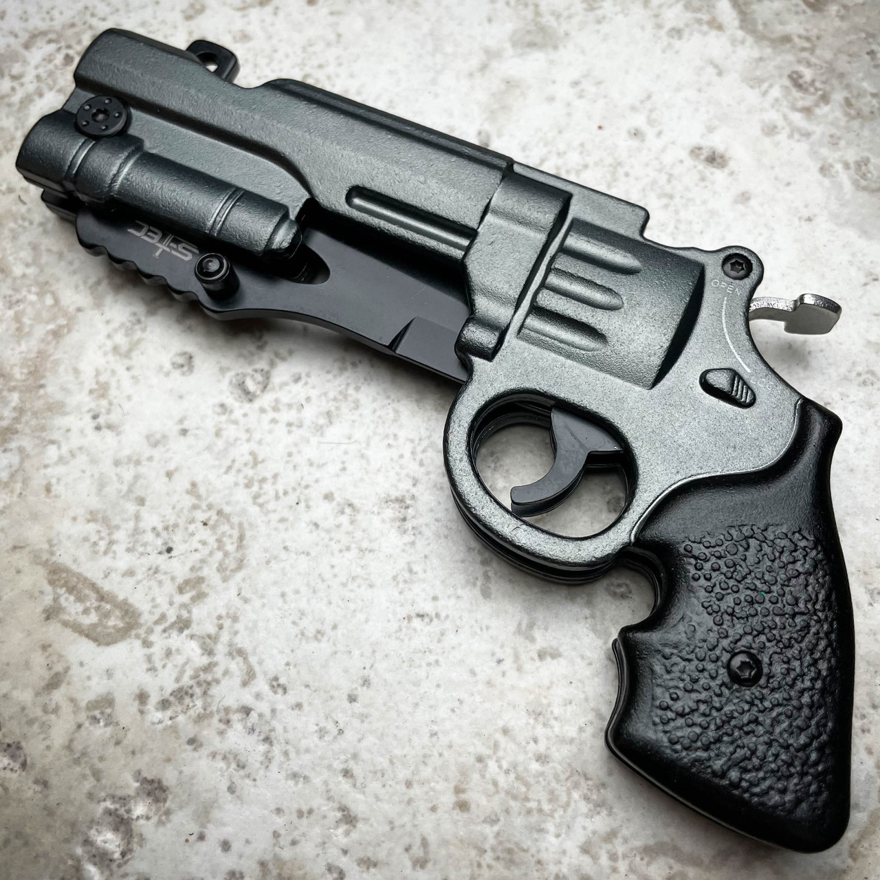 9″ REVOLVER Tactical Pistol Replica Gun Stainless Steel Folding Pocket Knife – Cool Design