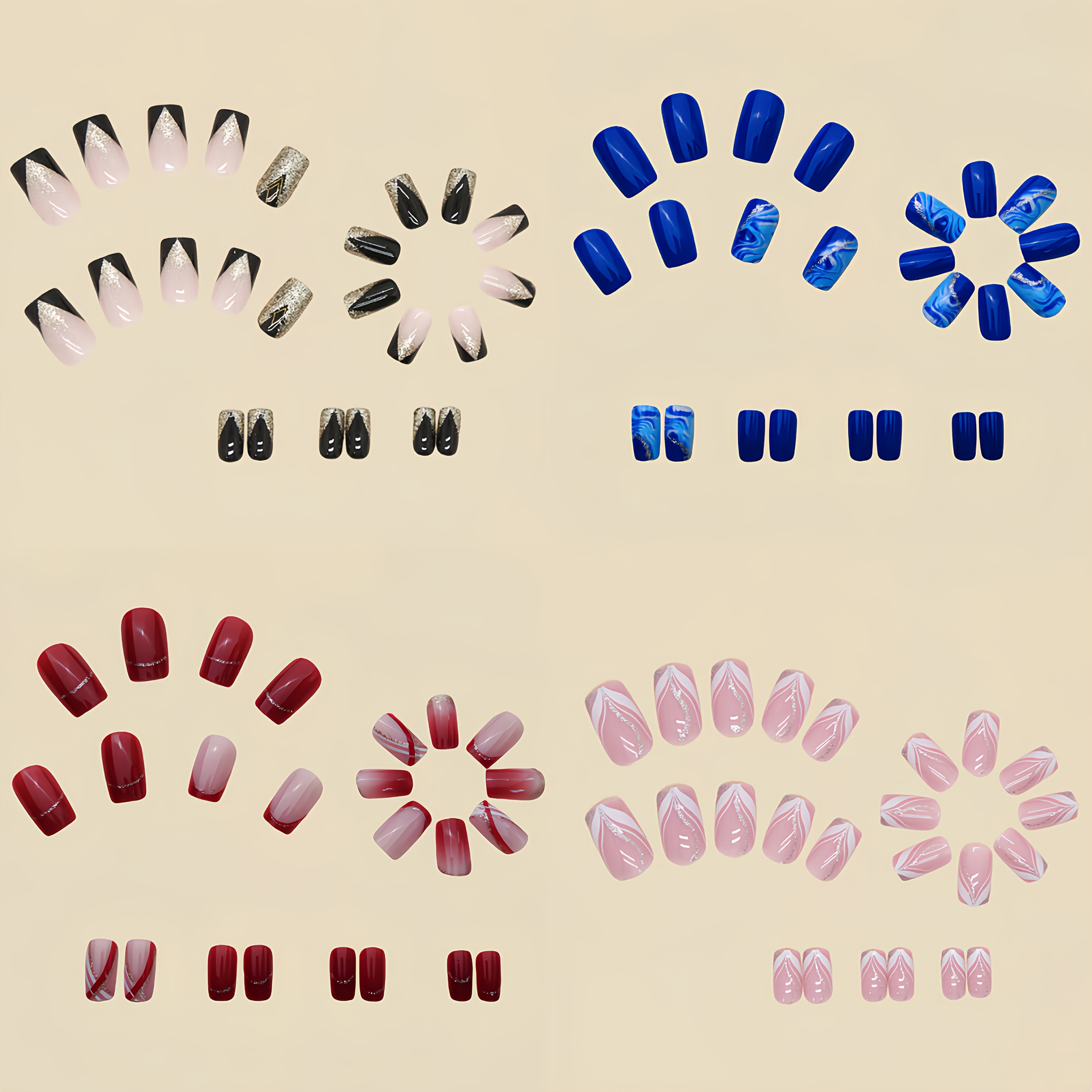 96 Nails: Multiple sizes per color to ensure a perfect fit for every finger.