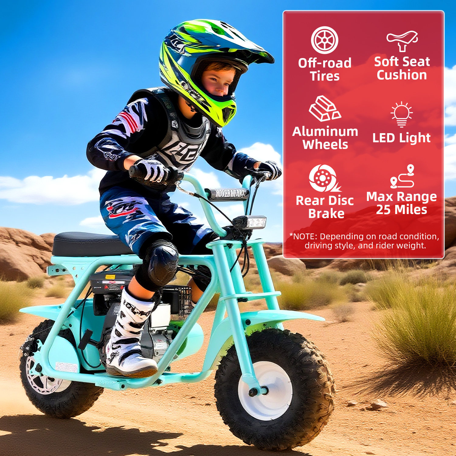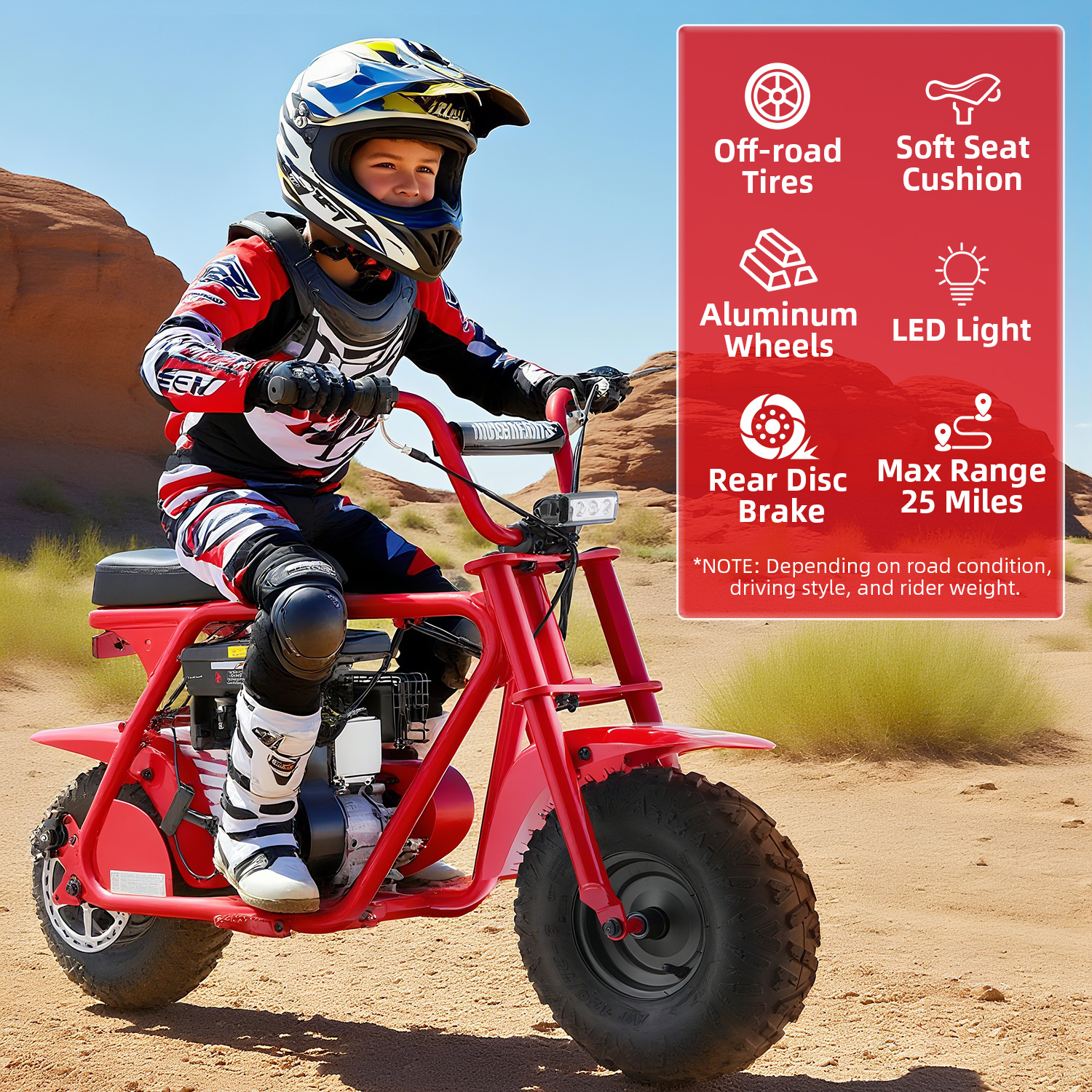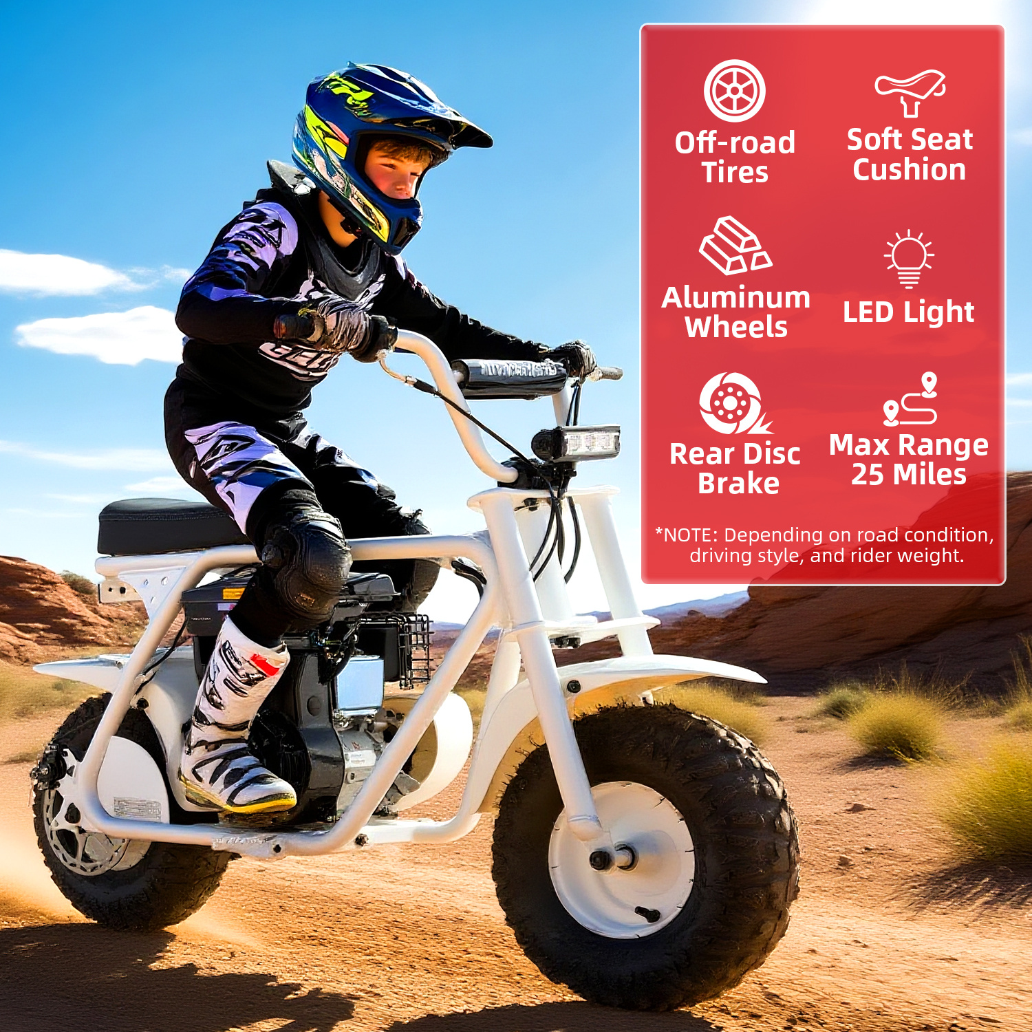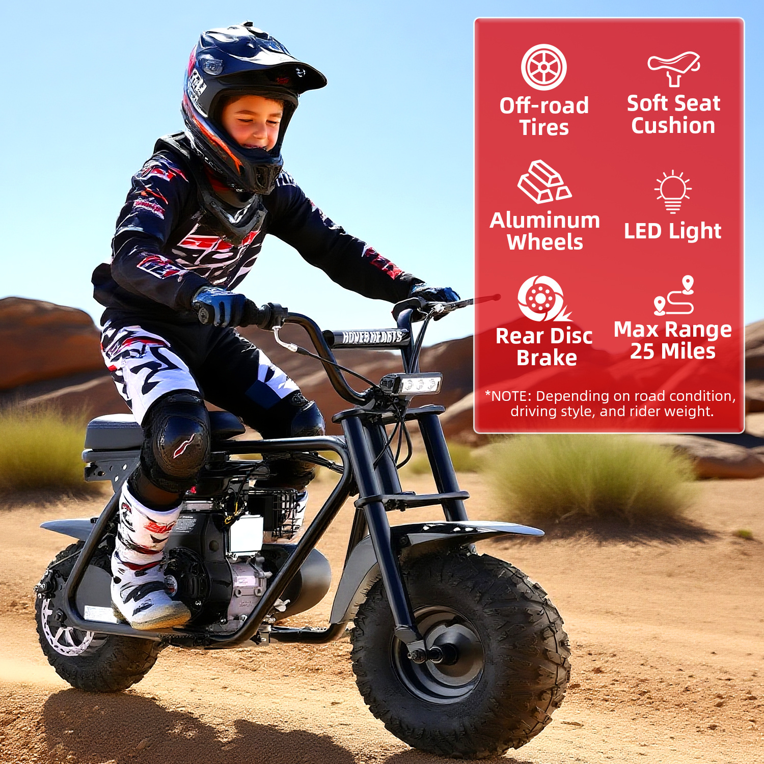 99cc 4-Stroke Gas Bike, All-Terrain Mini Dirt Bike for Adults with LED Headlight, Up to 34.5KM/H, Max 200LBS,MB001 sports & outdoor play motorcycle,gift ideas
