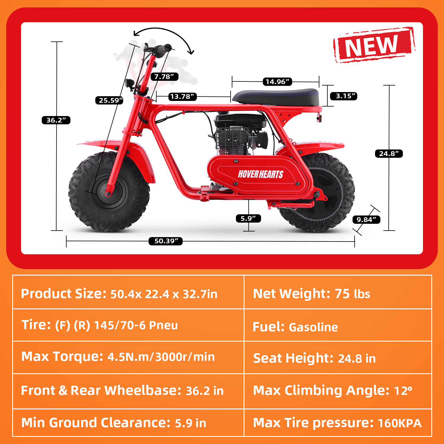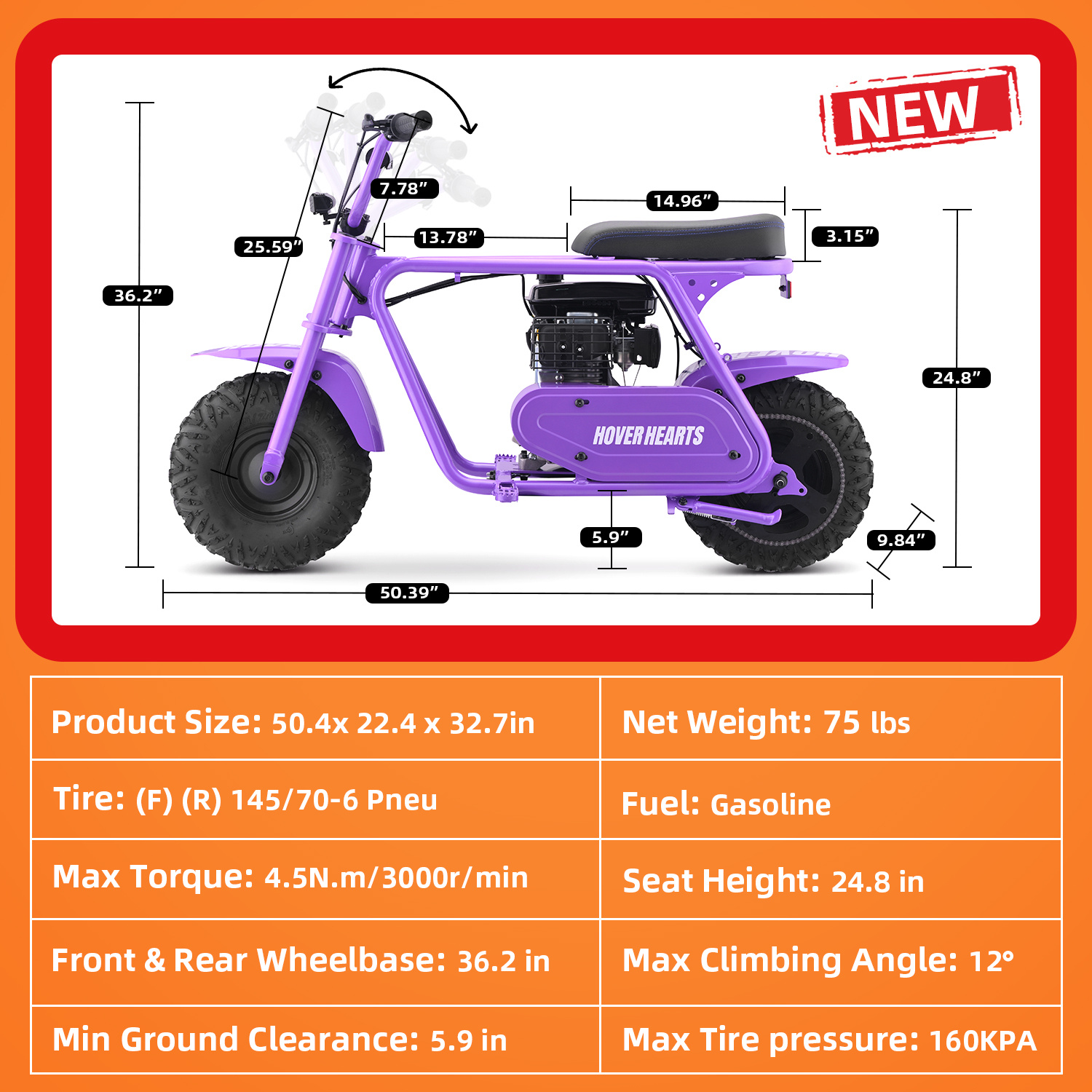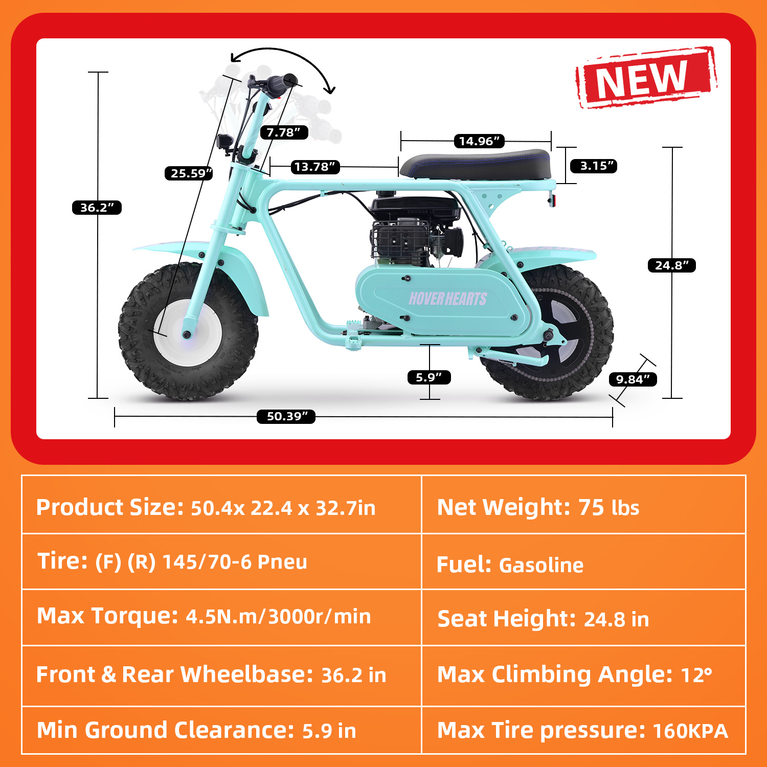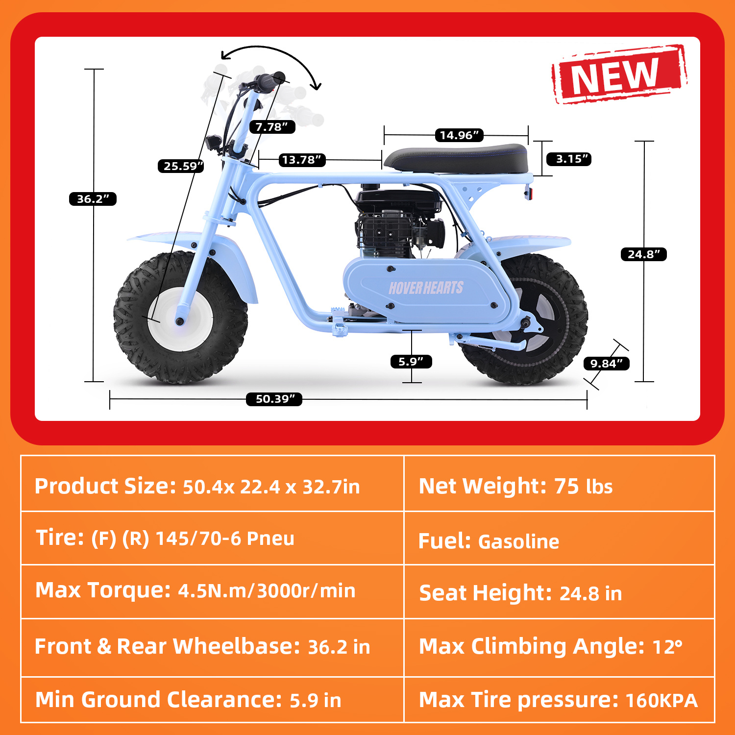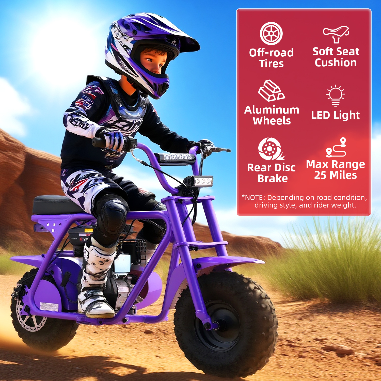99cc 4-Stroke Gas Bike, All-Terrain Mini Dirt Bike for Adults with LED Headlight, Up to 34.5KM/H, Max 200LBS,MB001 sports & outdoor play motorcycle,gift ideas