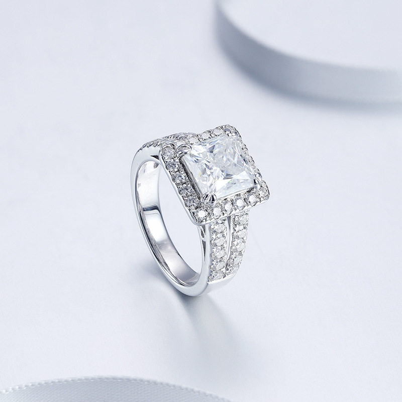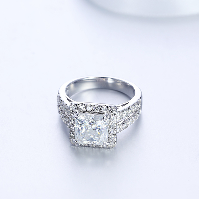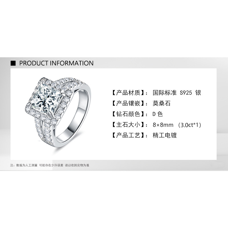 A High-End Light Luxury Ring Made of S925 Sterling Silver, Featuring a Princess Square Design And Moissanite, Intended for Women And Suitable for Trade