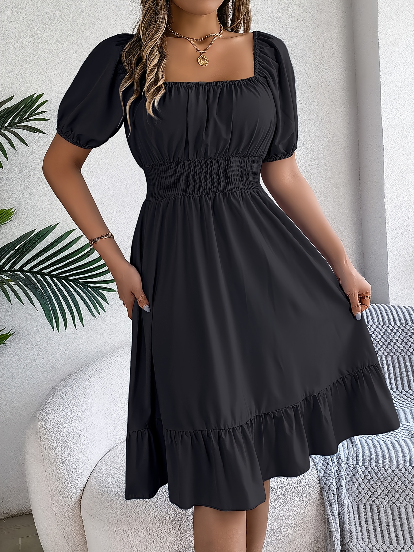 A-Line Dress with Puff Sleeves And Square Neck for Women’S Spring – Summer 2024 Fashion