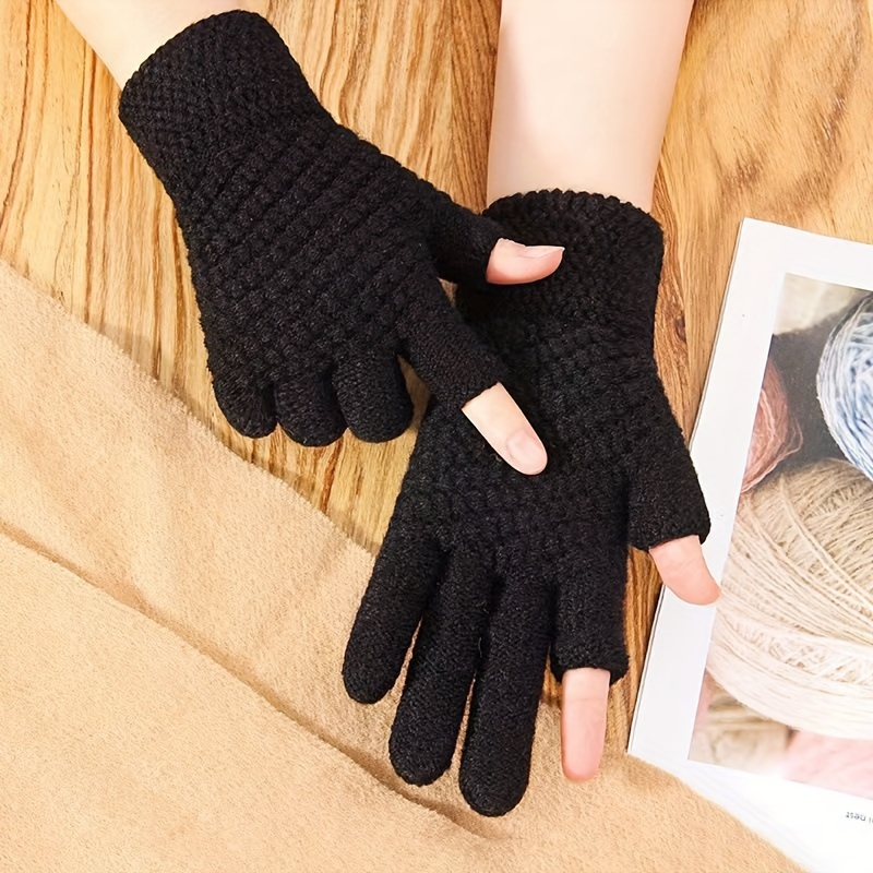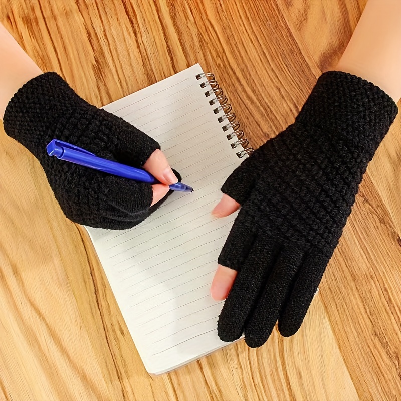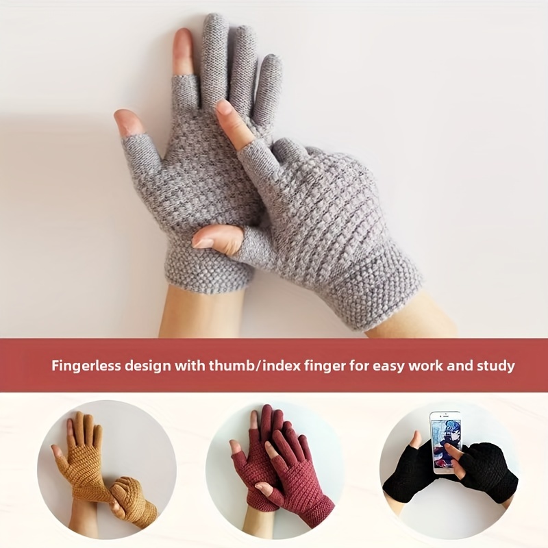 A Pair of Knitted Touchscreen Gloves for Winter Warmth, Featuring a Simple Elastic Design in Solid Colors, Suitable for Writing, Studying, Working, Outdoor Activities, And Cycling. They Are Also Hand Washable.