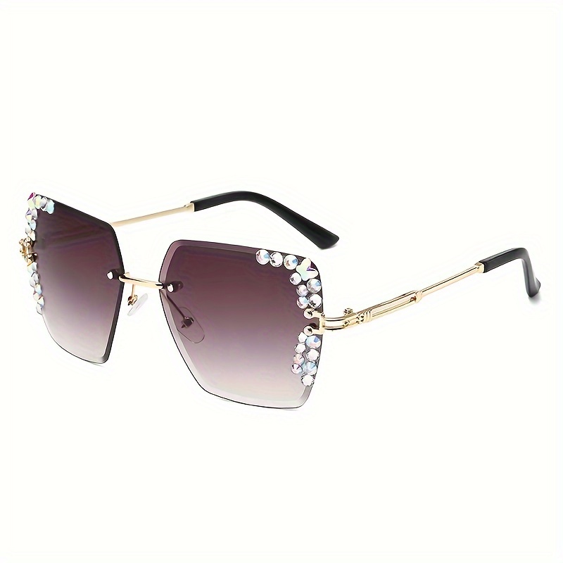 A Stylish Pair of Women’S Square Frameless Gradient Lens Glasses, Adorned with Crystal Decorations, Made of Metal with PC Lenses, Featuring a Casual Starry Design, Comes with a Glasses Cloth And a Storage Case for Glasses, Sunglasse Women Retro, Sunglasse Men Retro, Sunglasse Retro, Lenses For Women, Shade For Women