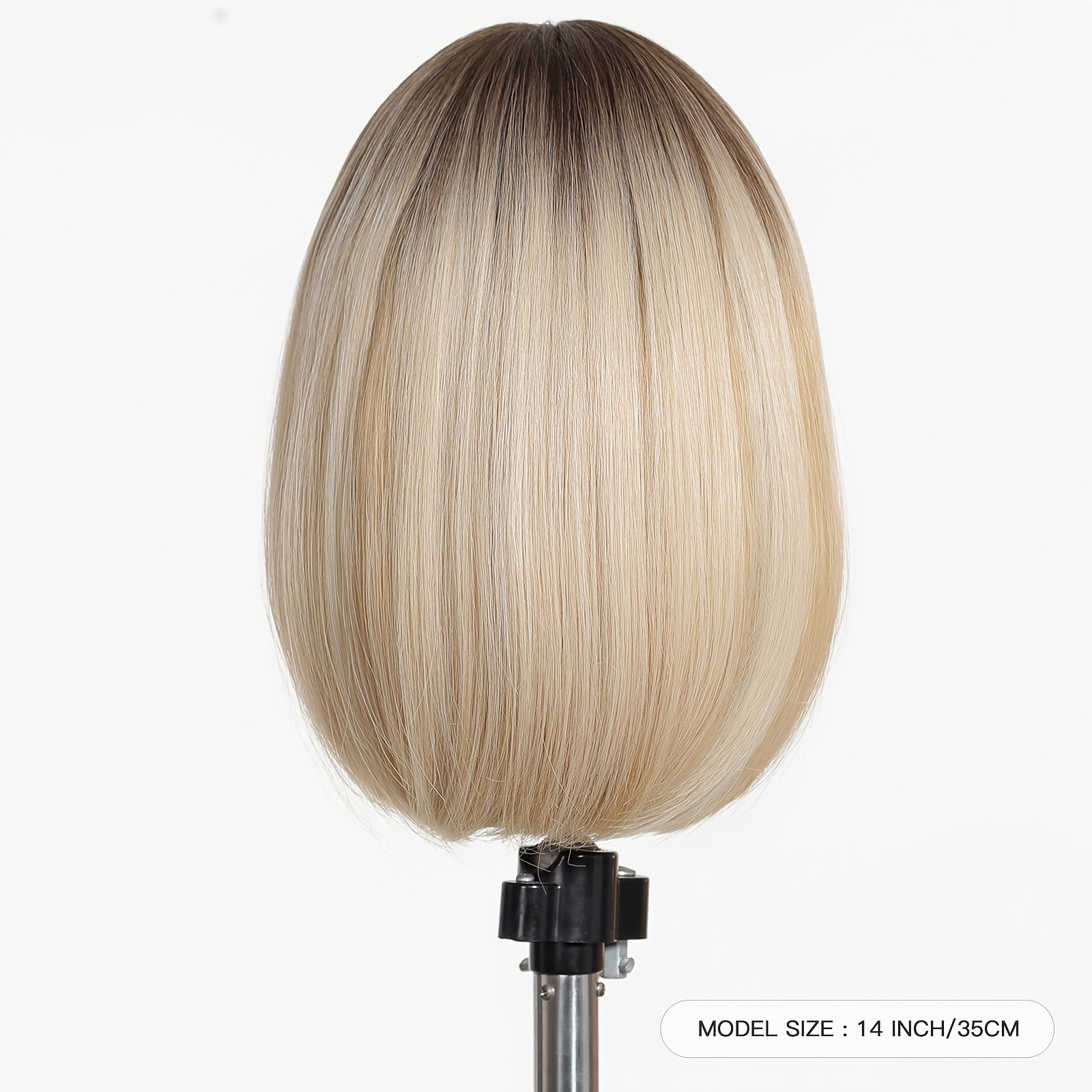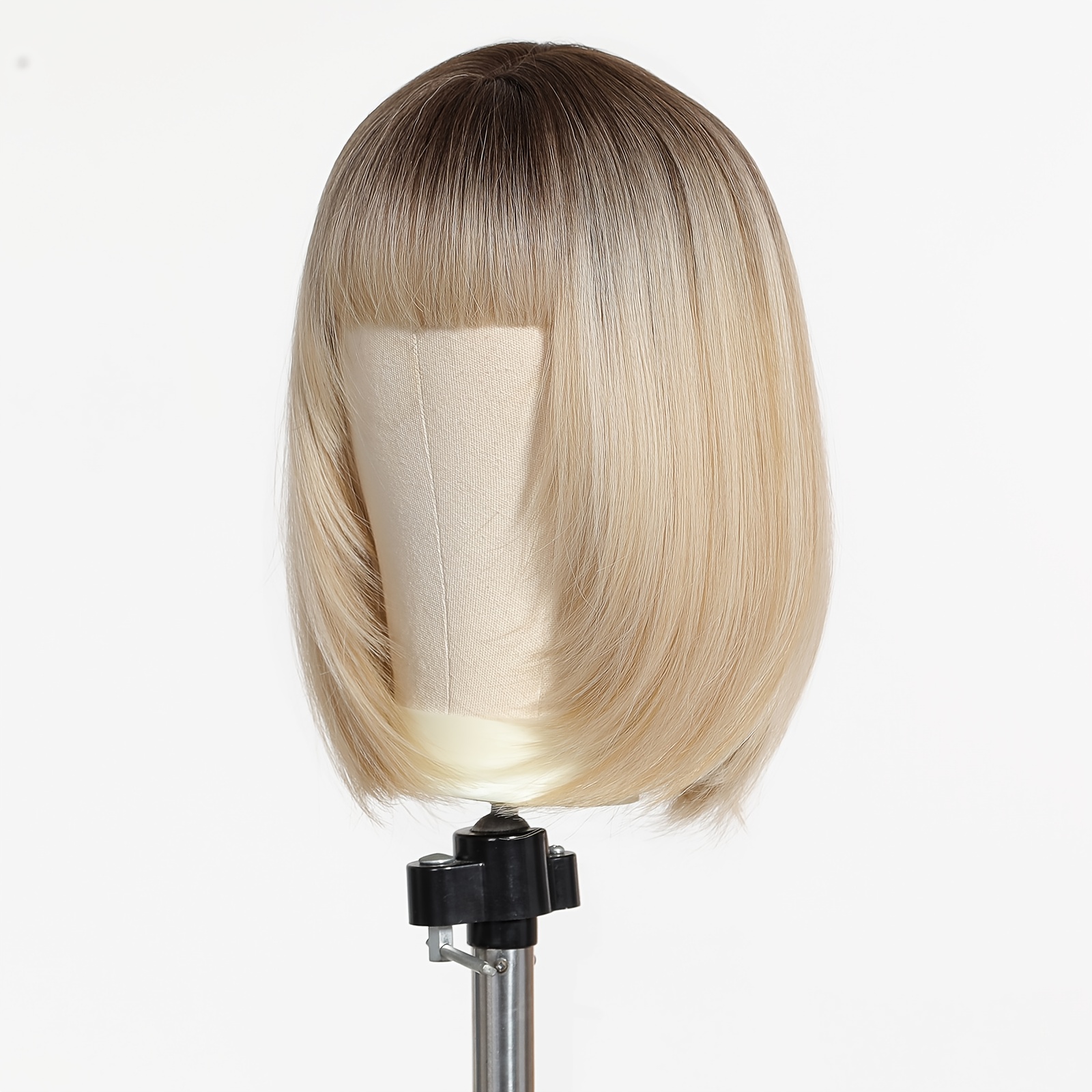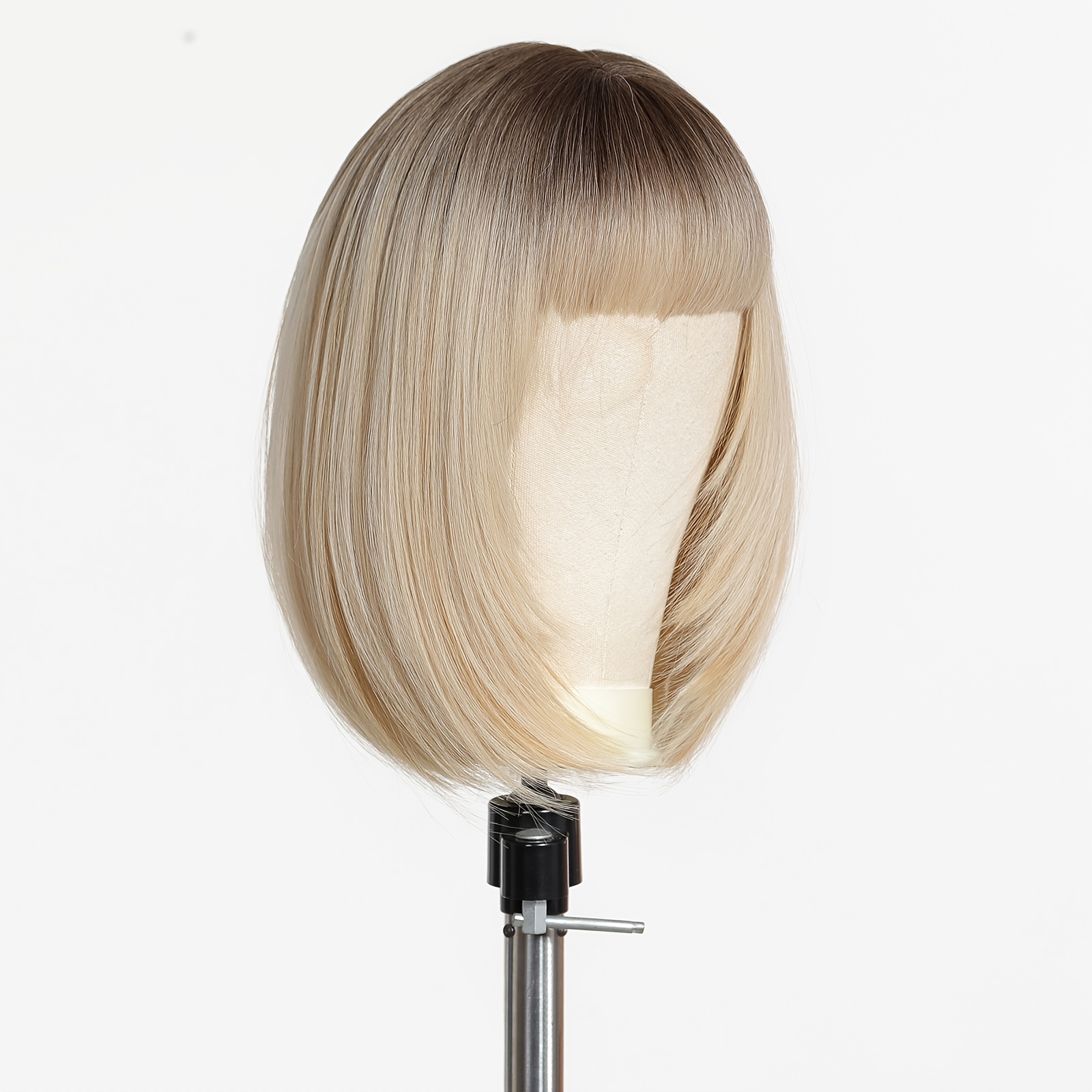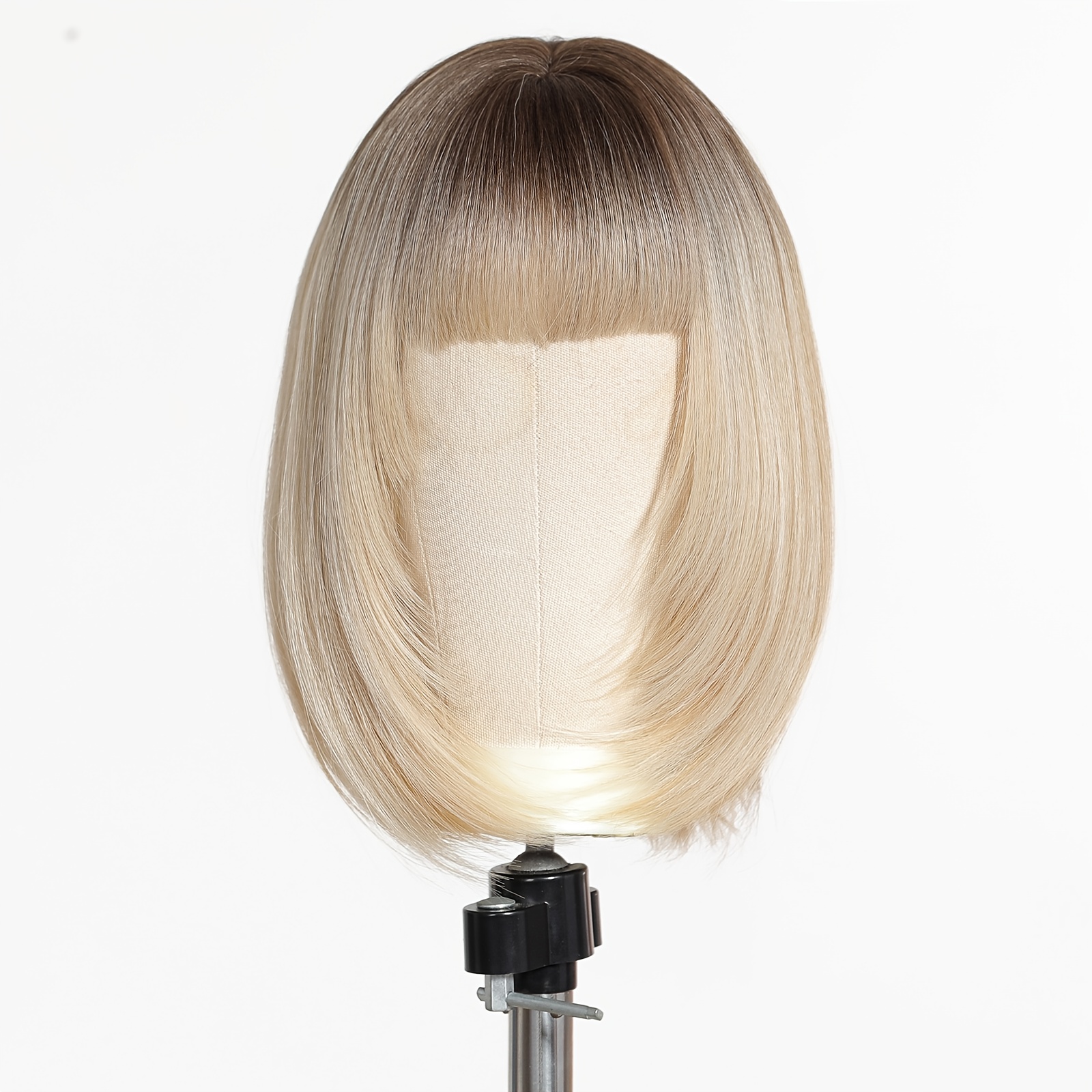 A Stylish Short White Wig for Women Featuring Bangs, Perfect for Weddings, Parties, Everyday Wear, And As Holiday Gifts. This Elegant Synthetic Wig in Golden Is Comfortable, Breathable, And Lightweight, Ideal for Occasions Like Valentine’S Day And C