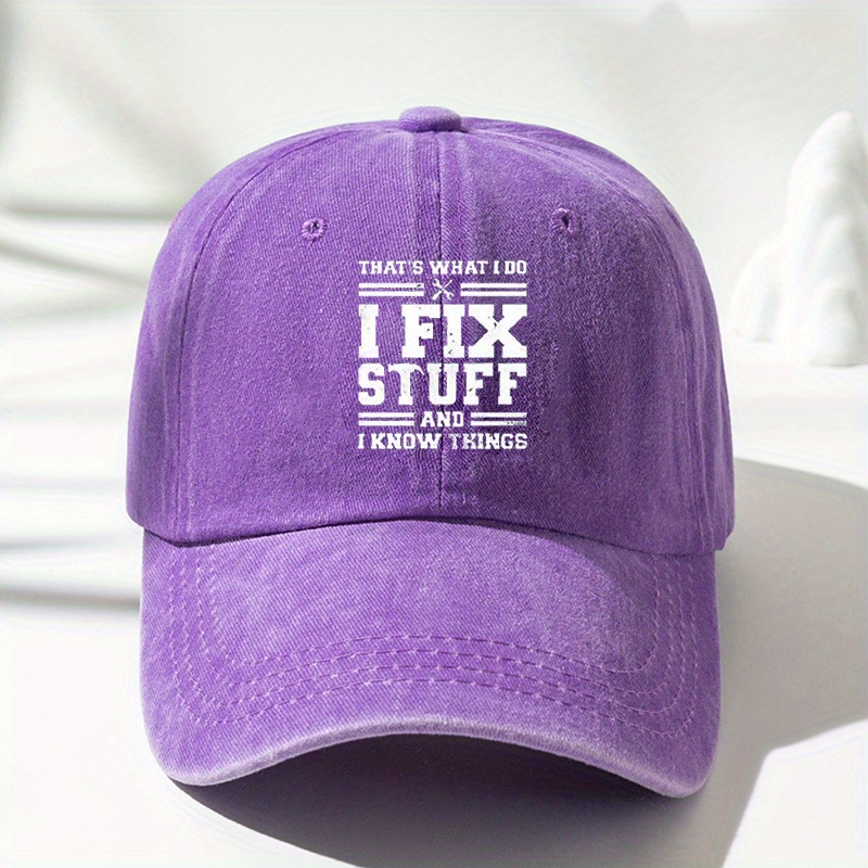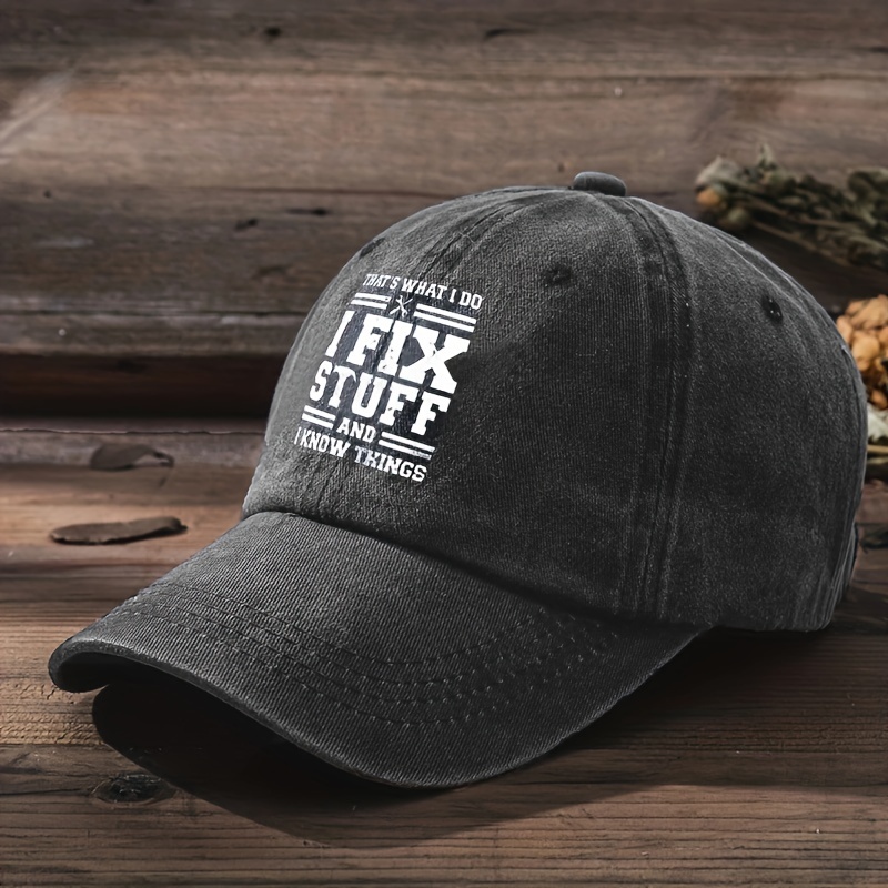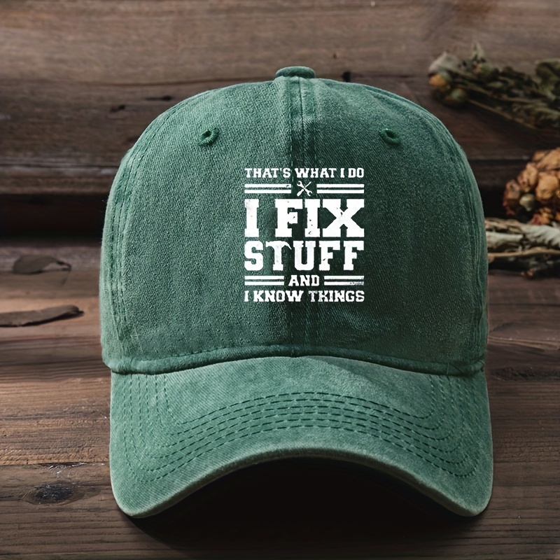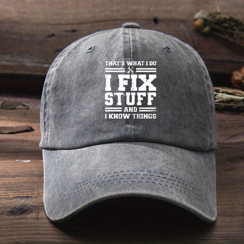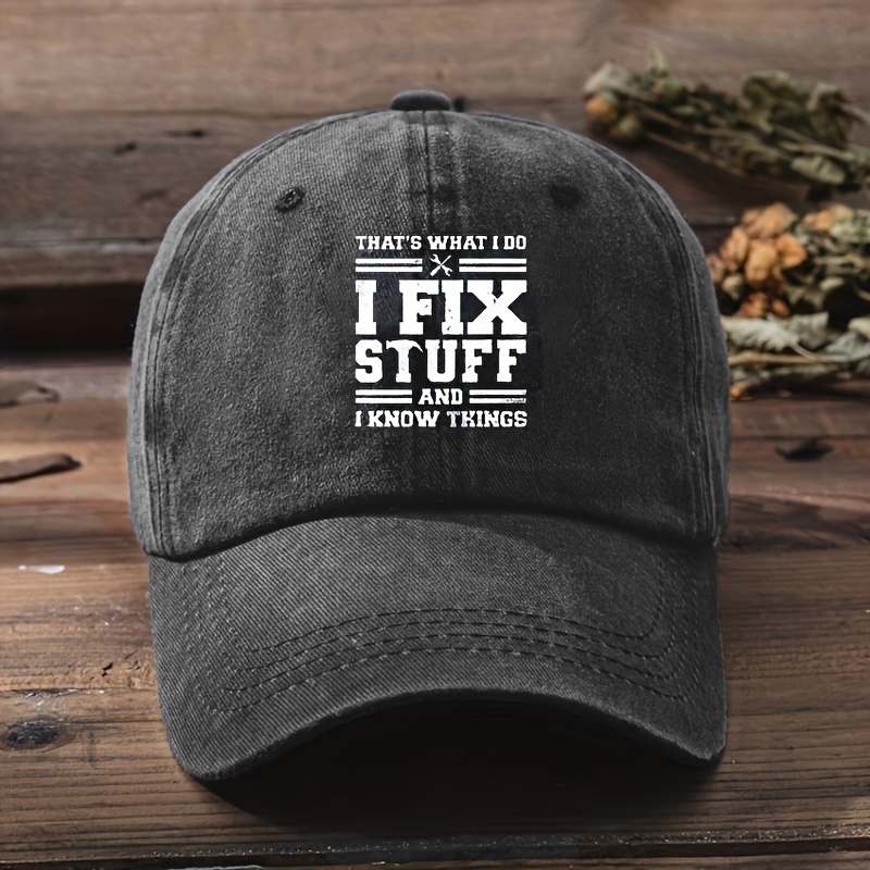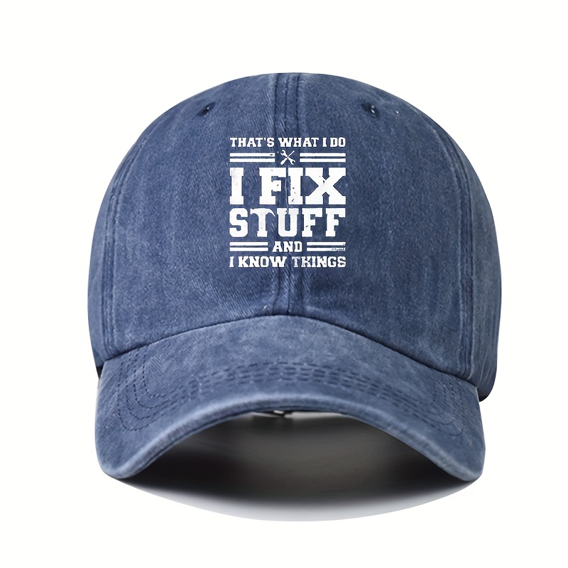 Adjustable Baseball Cap with “I FIX STUFF” Print, Sun Protection, Washable Polyester – Ideal for Outdoor Activities and Birthdays, Casual, Duckbill Cap
