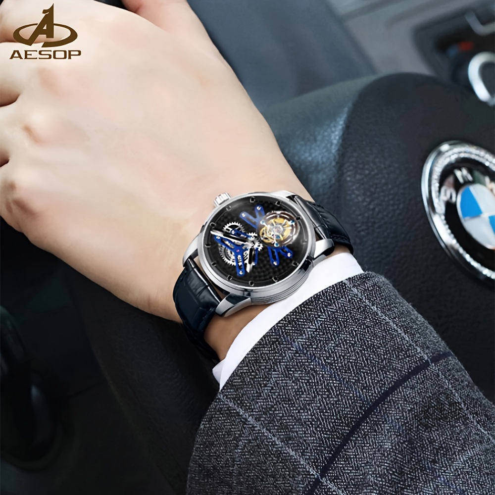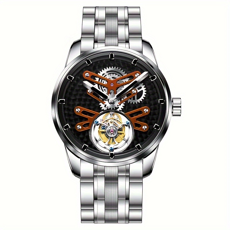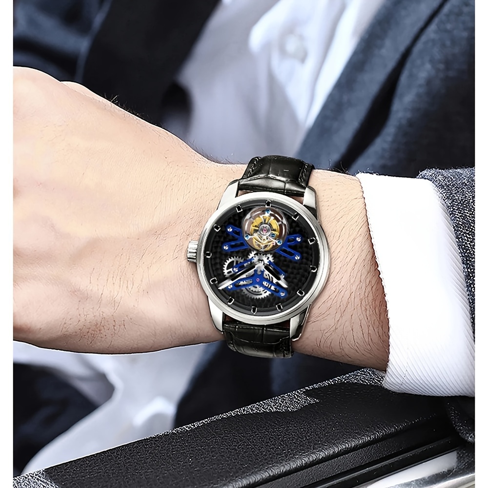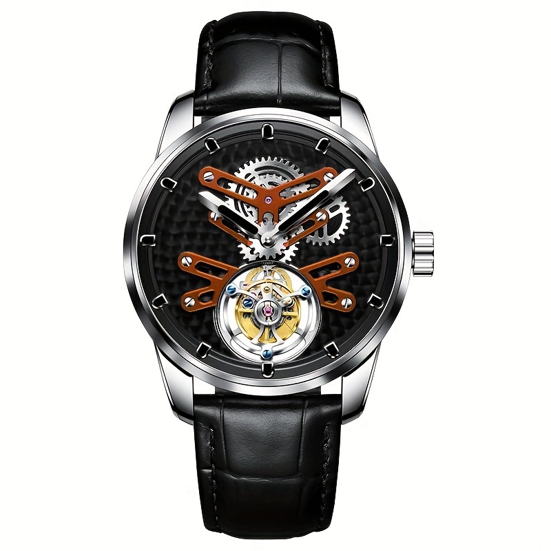 High-end Luxury Genuine Tourbillon Mechanical Watch, Manual Winding Skeleton Open-back Business Wristwatch, Holiday Gift