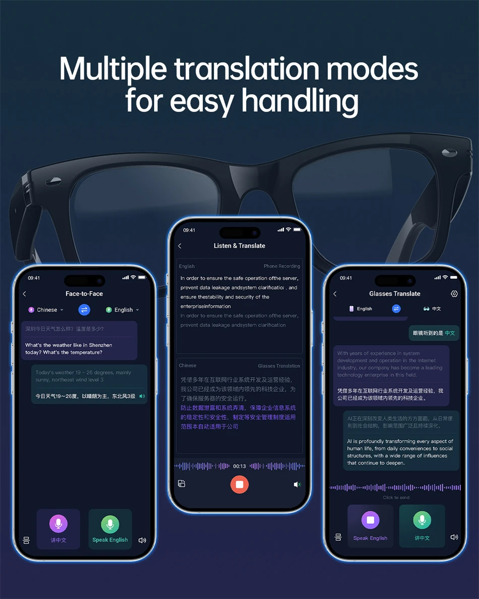 Support, mobile phone glasses translation, listening translation, face-to-face translation |
