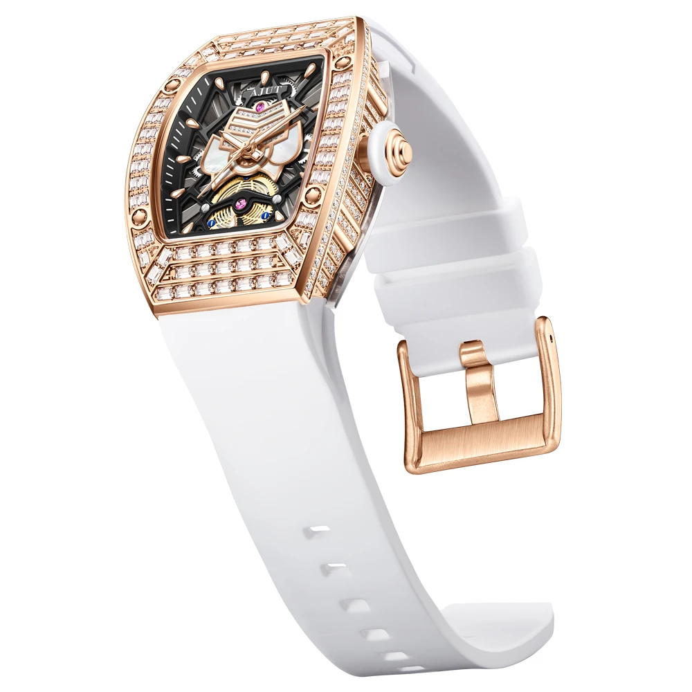Watch body: stainless steel case ring, inlaid with square zircon and round zircon on the side