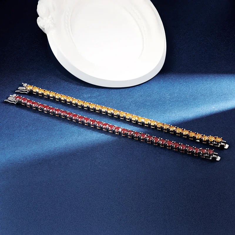 All Champagne Moissanite Tennis Bracelet For Women Men GRA Certified Original S925 Silver Lab Diamond Bangles Hand Chain