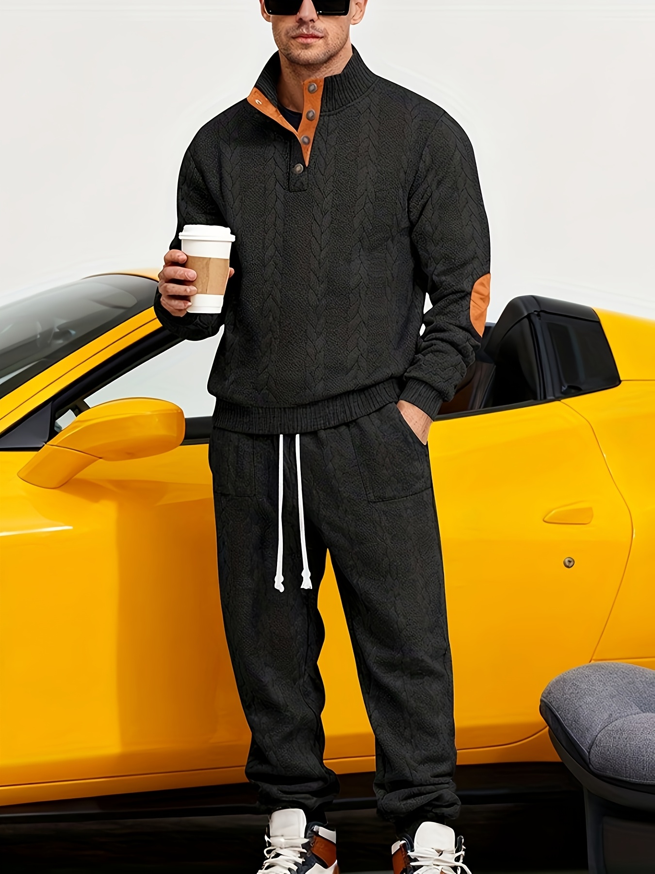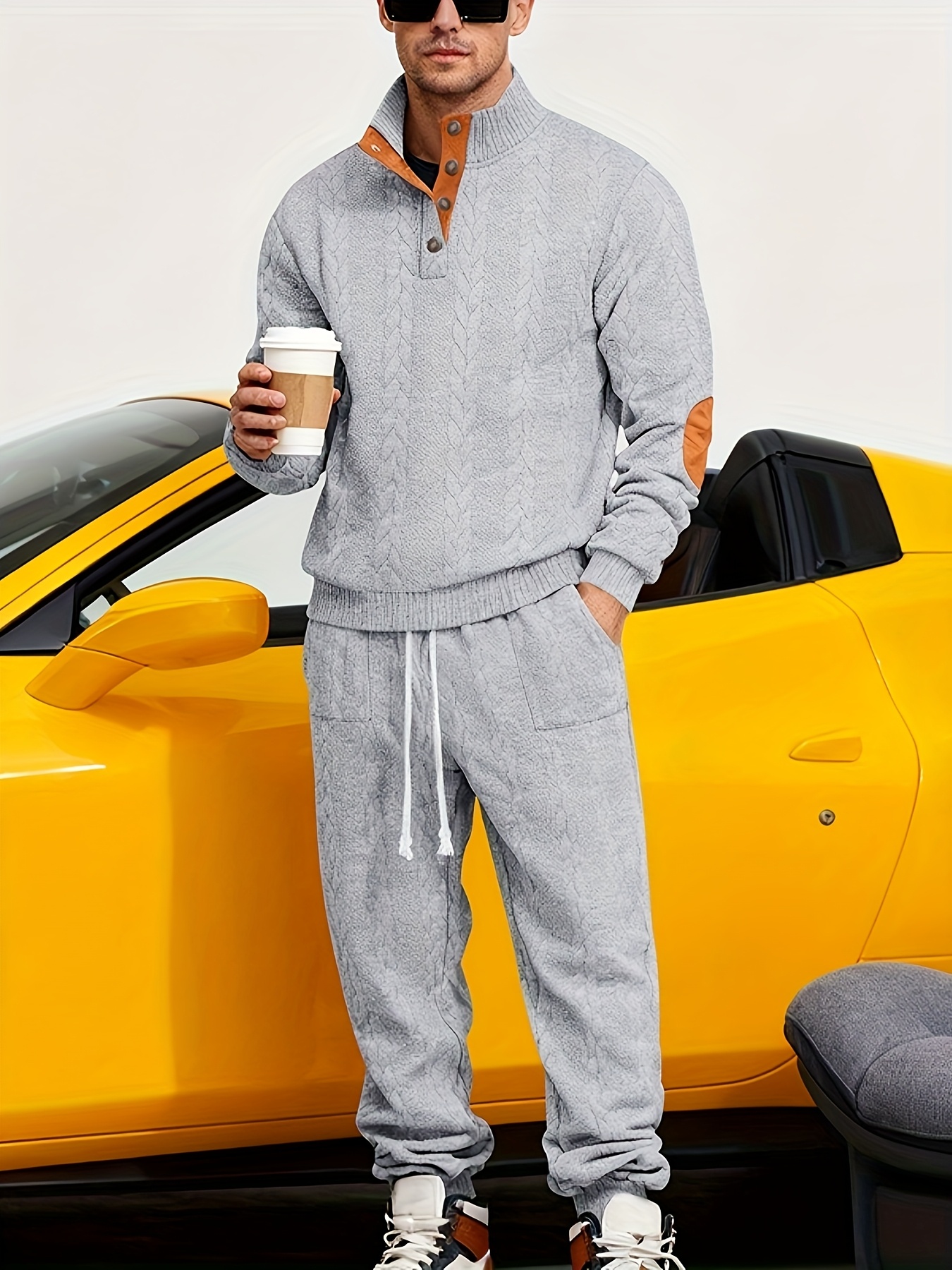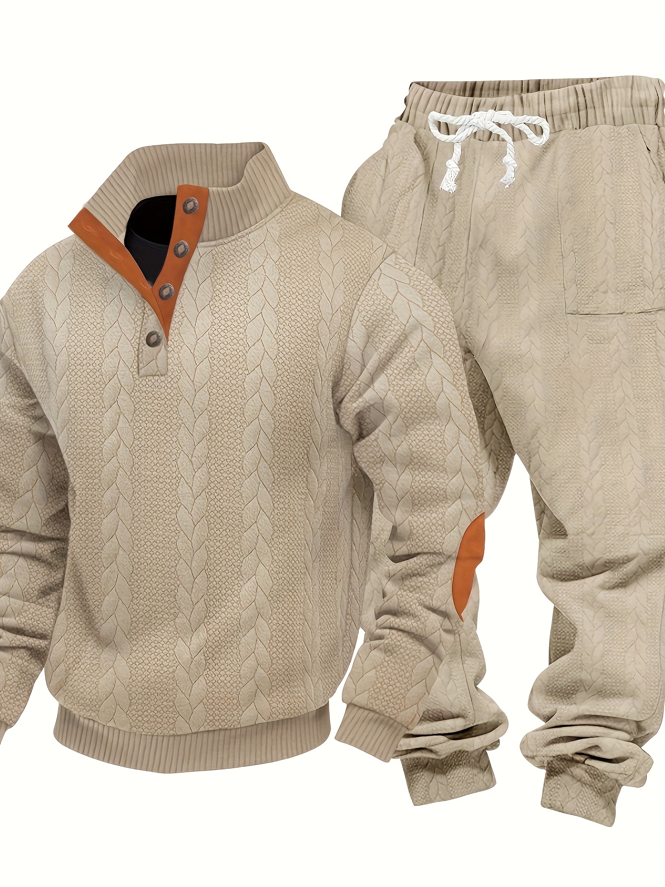 American Men’s Loose Heavyweight Textured Trendy Stand Collar Henley Sweatshirt