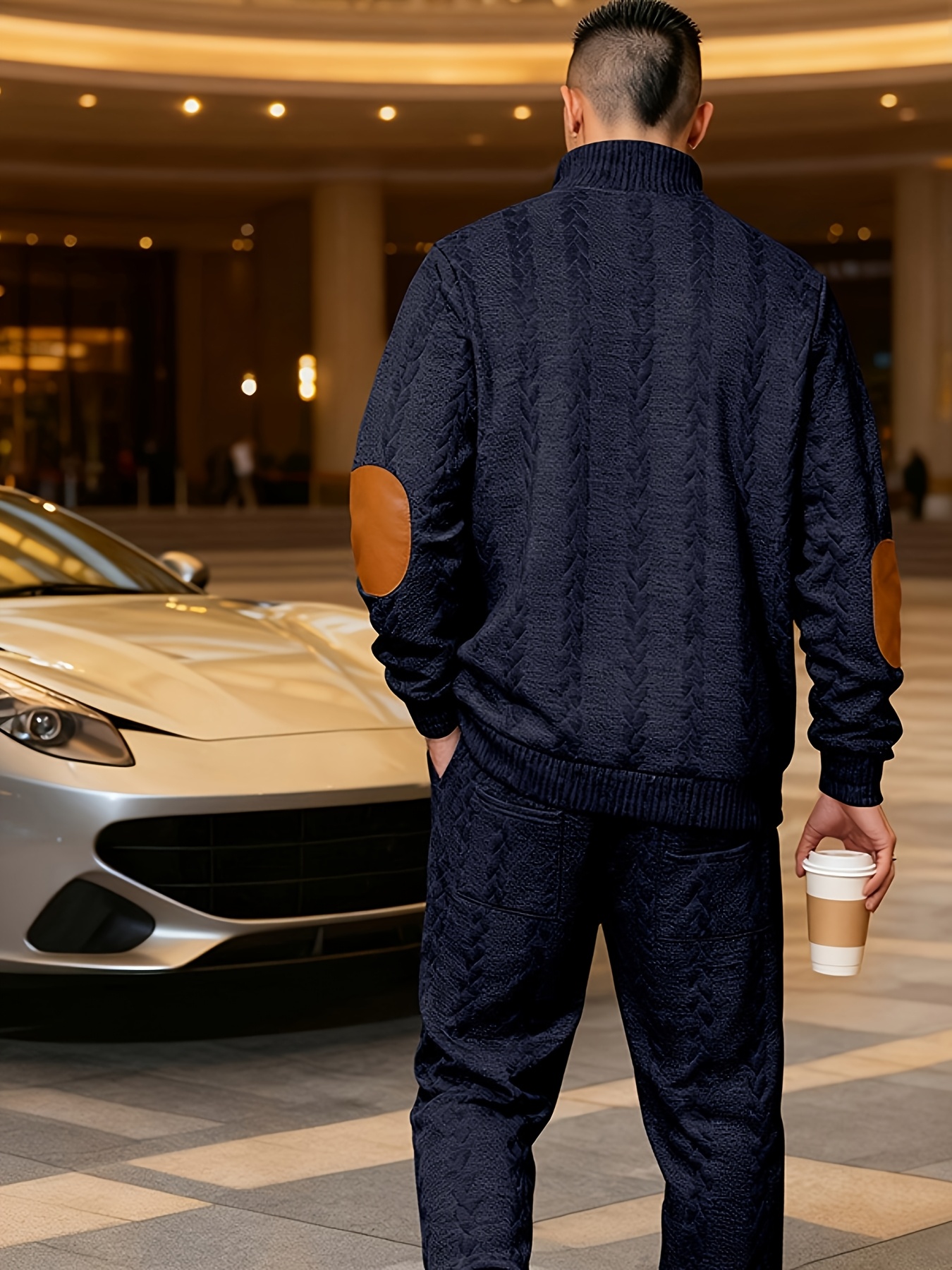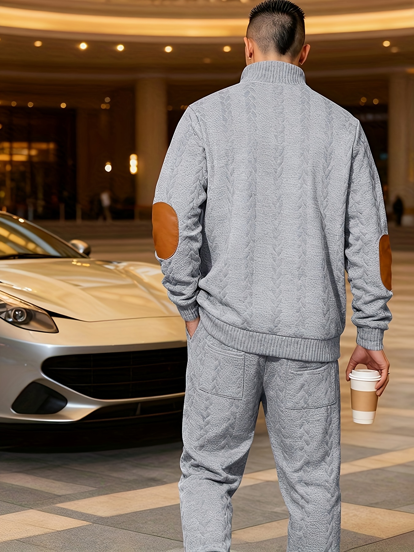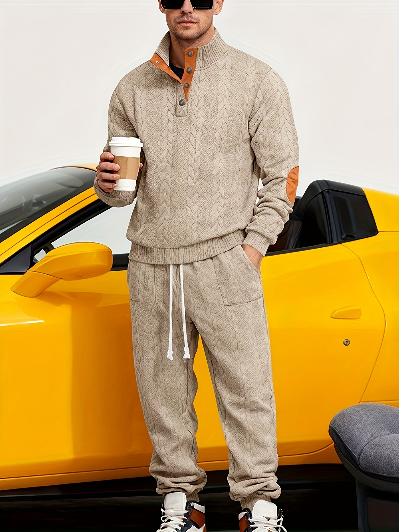 American Men’s Loose Heavyweight Textured Trendy Stand Collar Henley Sweatshirt
