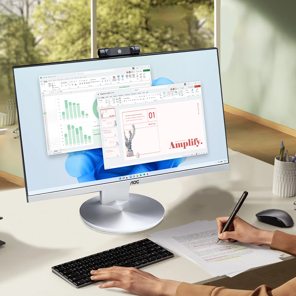 AOC All-in-One Business Desktop AMD R5 5600G 23.8″ 16GB RAM 512 GB SSD Windows 11 Home Wi-Fi Adjustable Angle Office Work