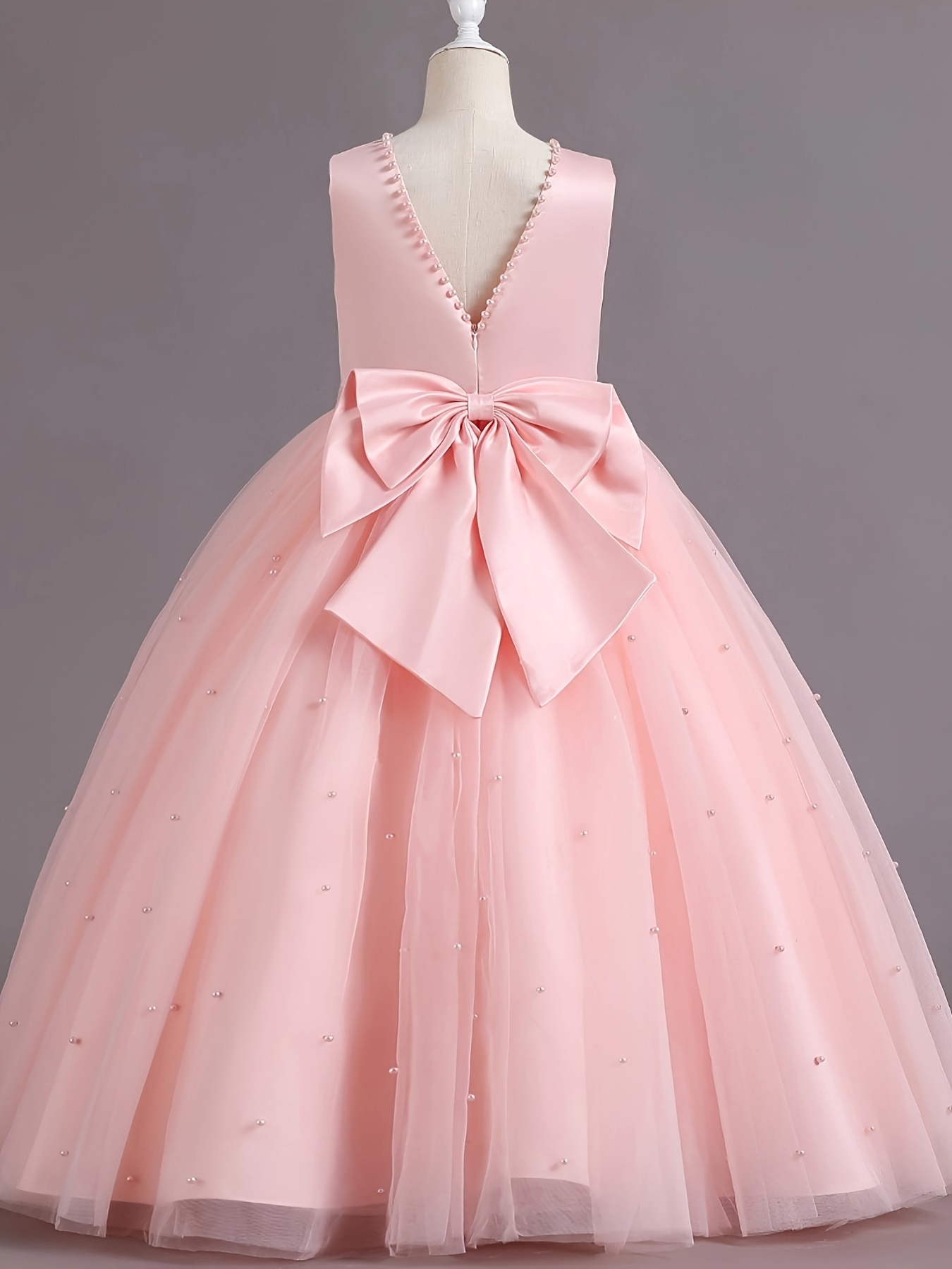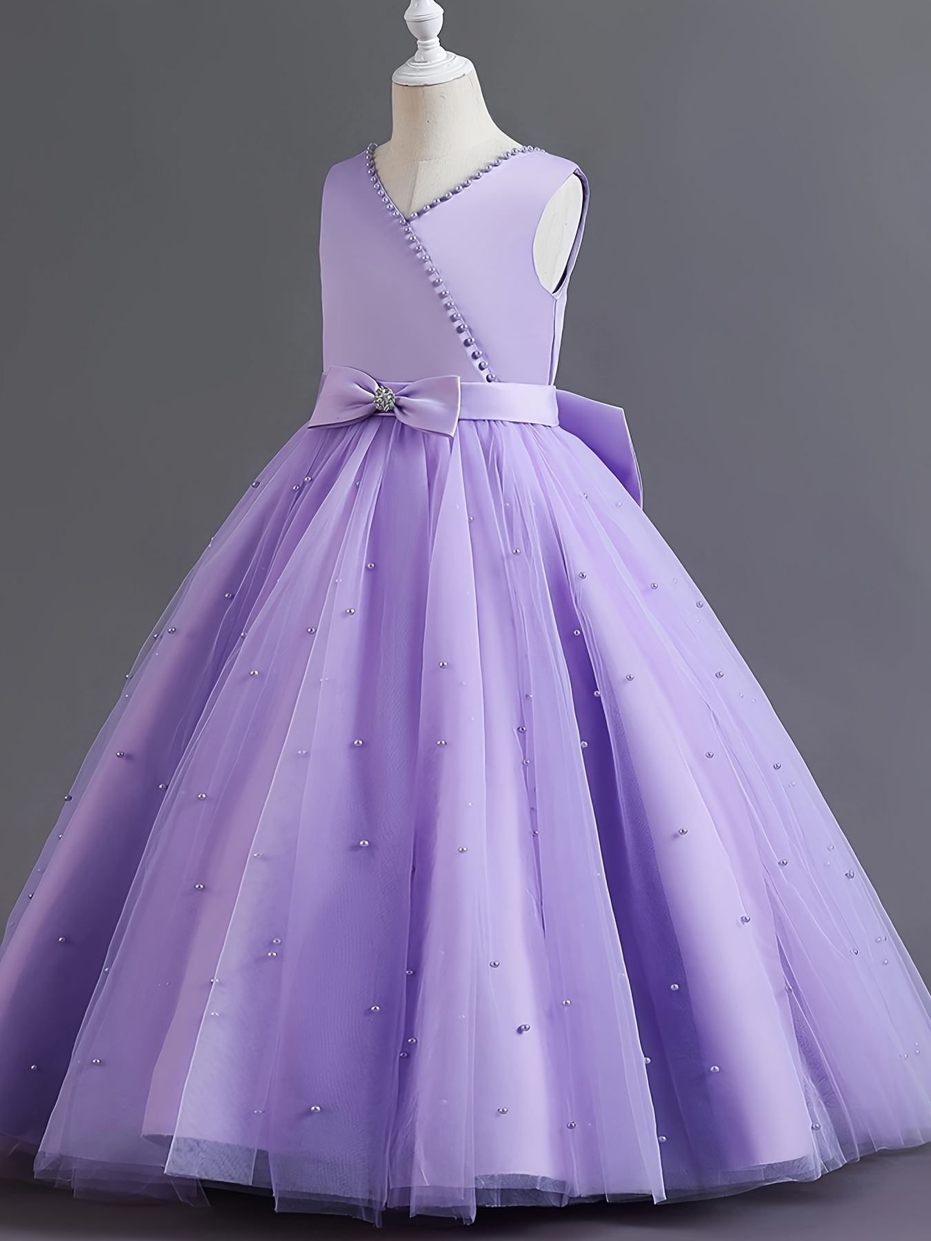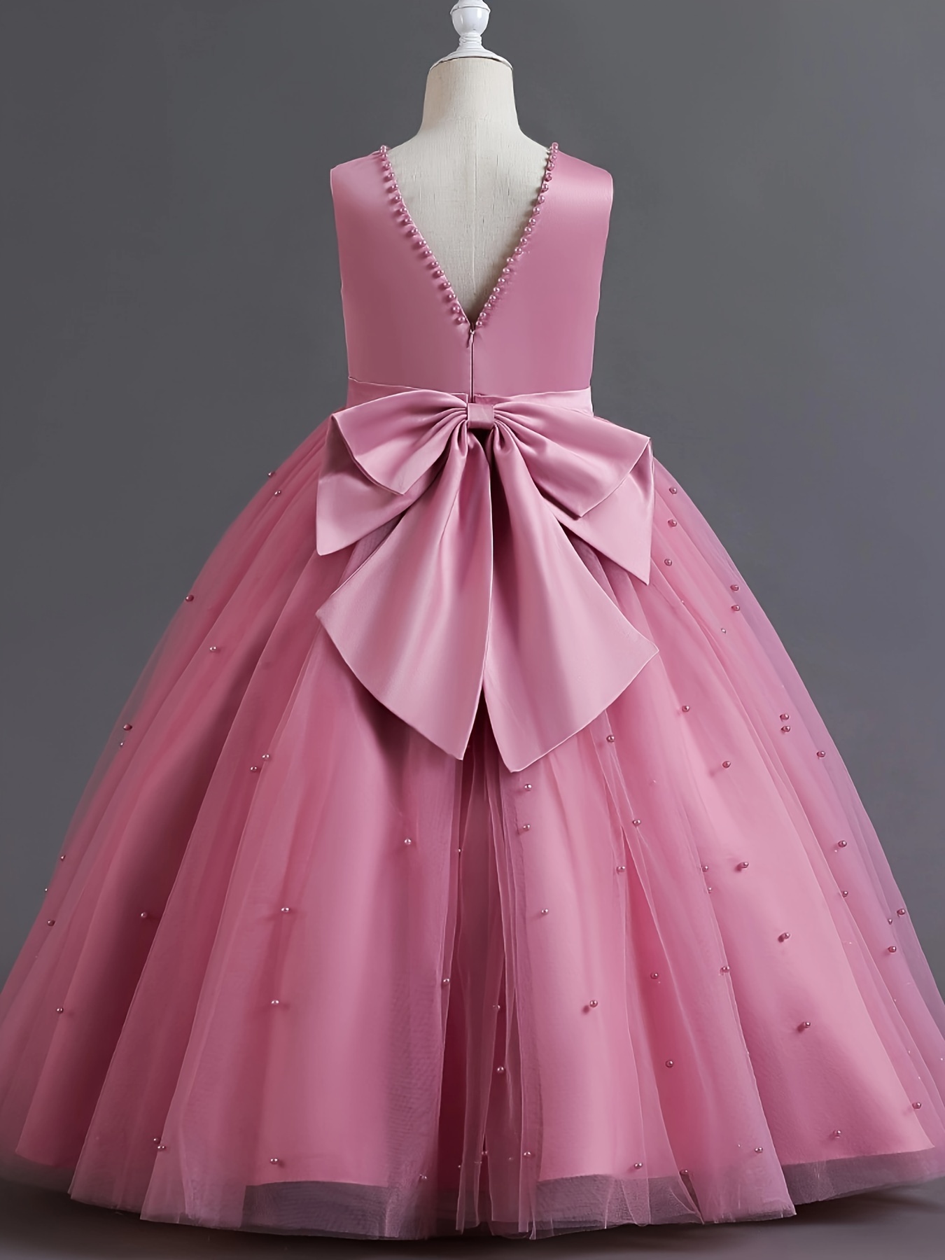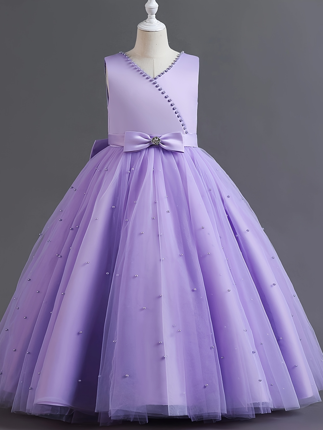 Asian 14Y Teenager V Neck Princess Beading Solid Color No-Sleeve Straight Skirt Evening Full Dress