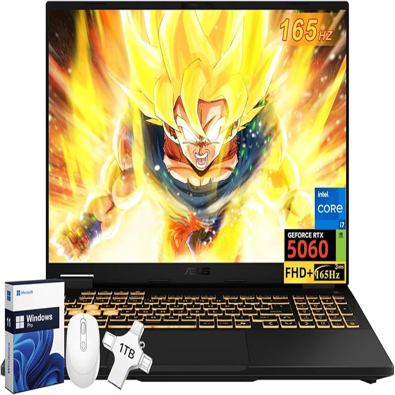 ASUS TUF Gaming F16 Laptop, NVIDIA RTX 5060 (Beat RTX 4070), Intel 14th Core i7-14650HX, 16″ 1920×1200 FHD+ 165Hz Anti-Glare LCD, WiFi 6E, 64 GB DDR5, 8 TB SSD + 1 TB UFD, Windows 11 Pro, Accessories