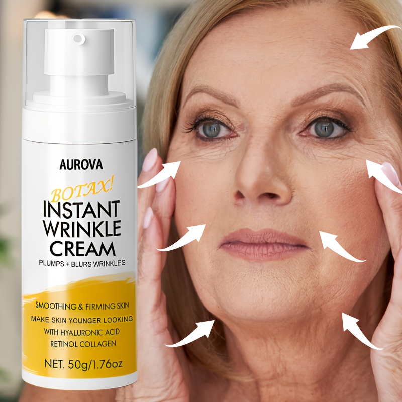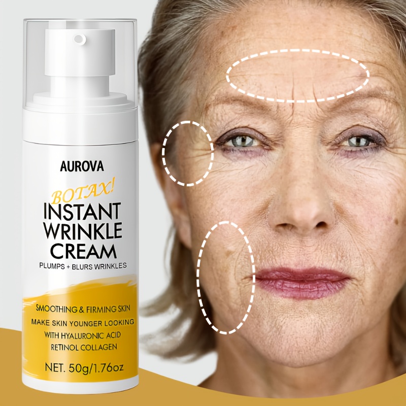 AUROVA Instant Wrinkle Cream with Hyaluronic Acid, Retinol, and Collagen | Smoothing and Firming Moisturizer for Eyes and Face, Fast-Absorbing, Non-Greasy, Alcohol-Free, Hypoallergenic, Daily Hydration for All Skin Tones, 50g.