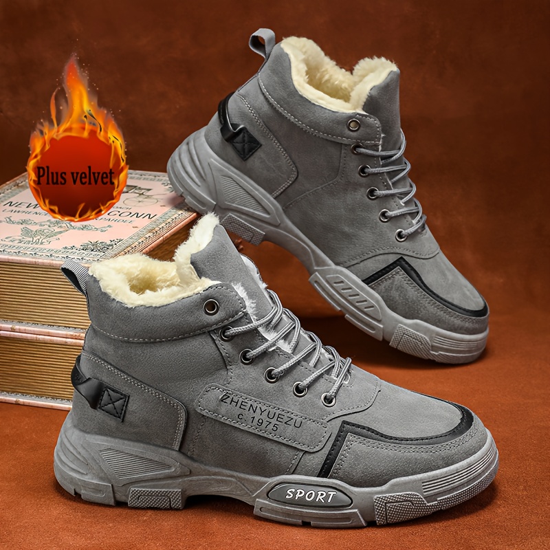 Autumn and Winter High-Top Thickened Fleece-Lined Warm Snow Boots, Comfortable Lightweight Casual Walking Shoes for Outdoor Sports, Hiking, Travel, and Camping Gear