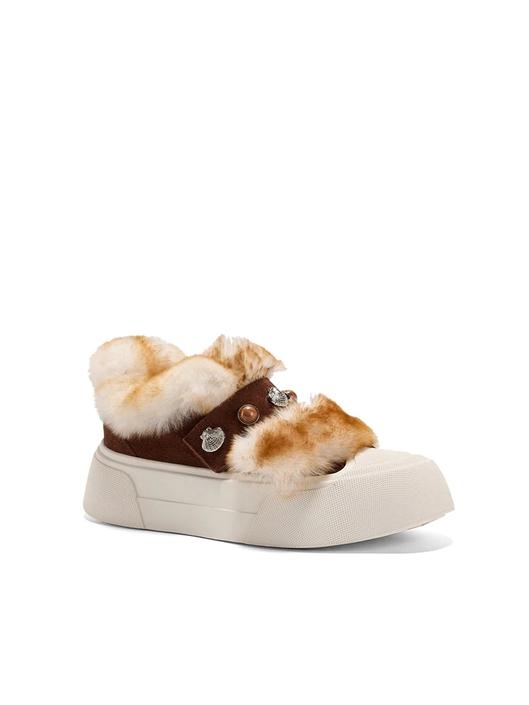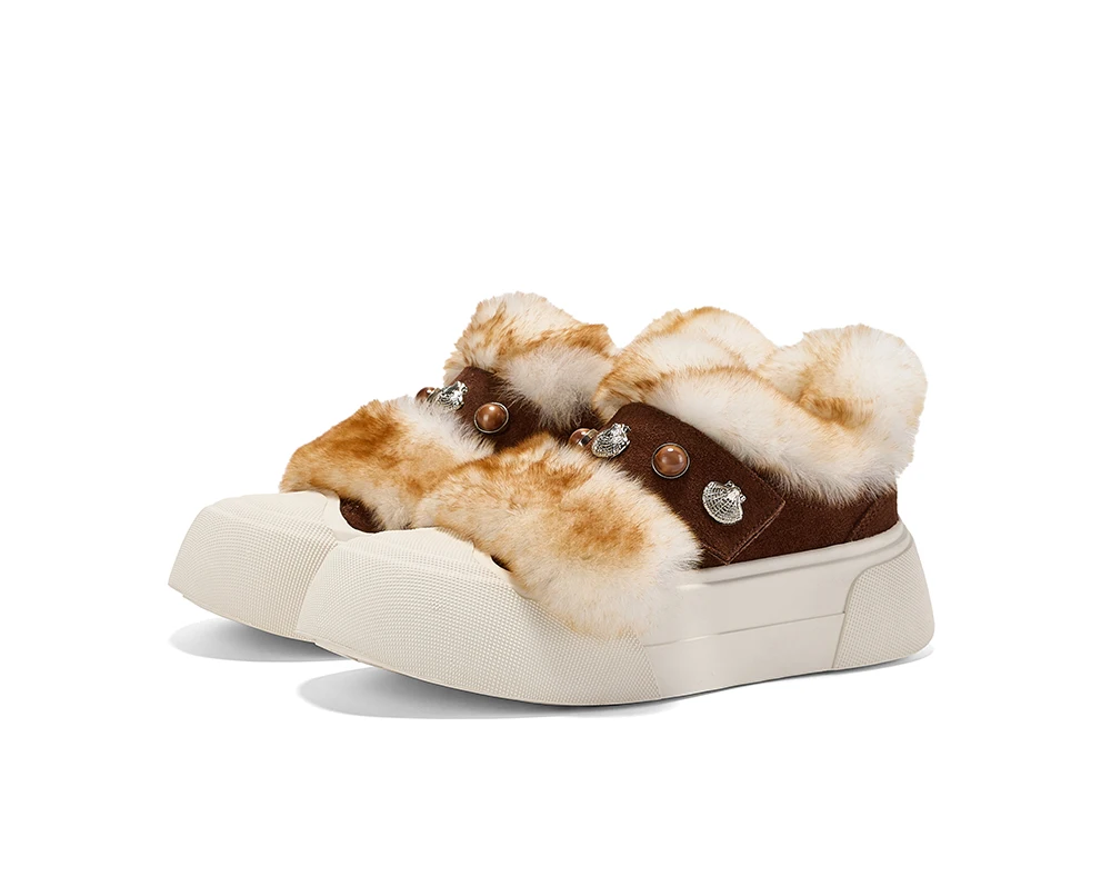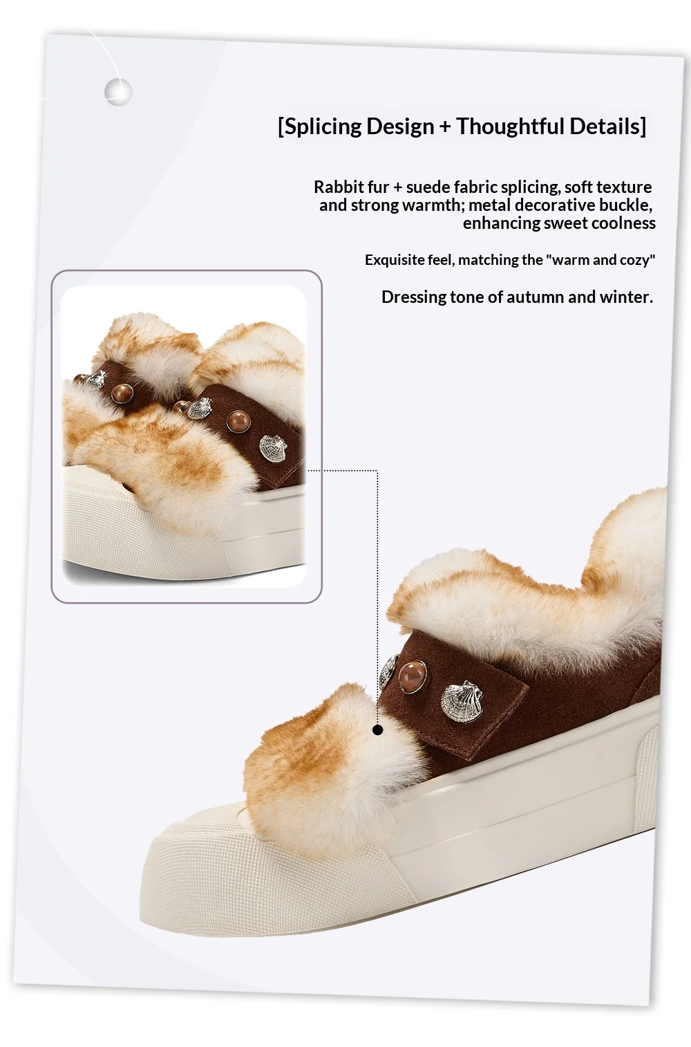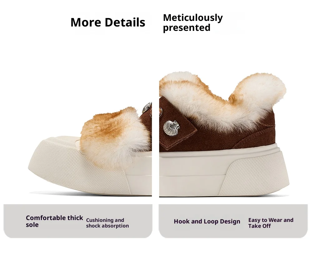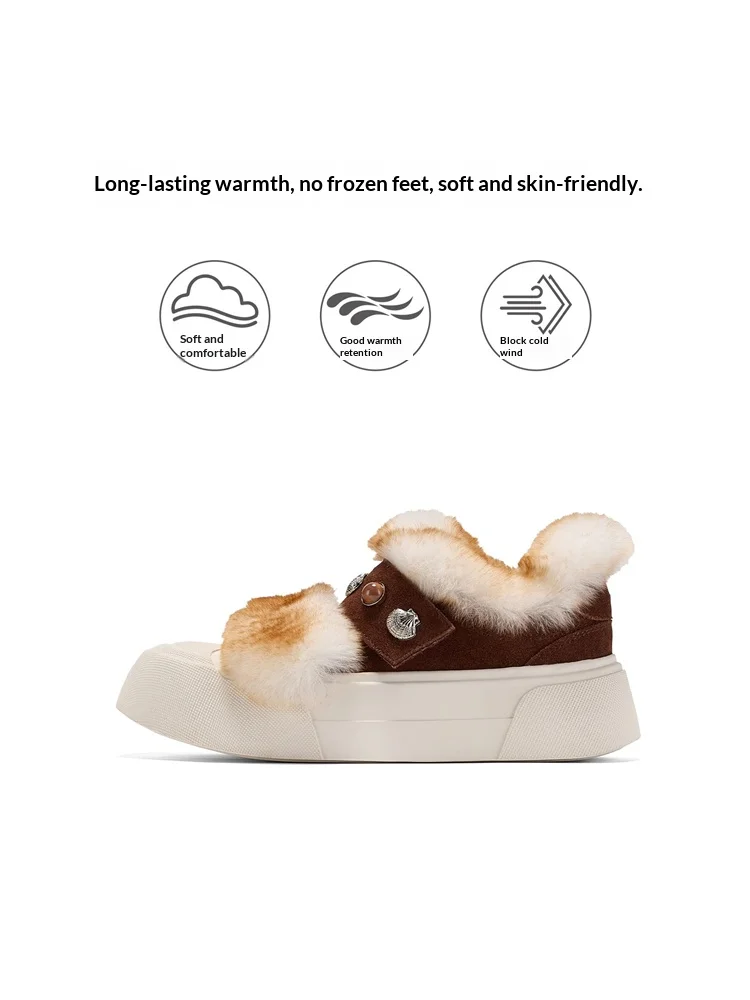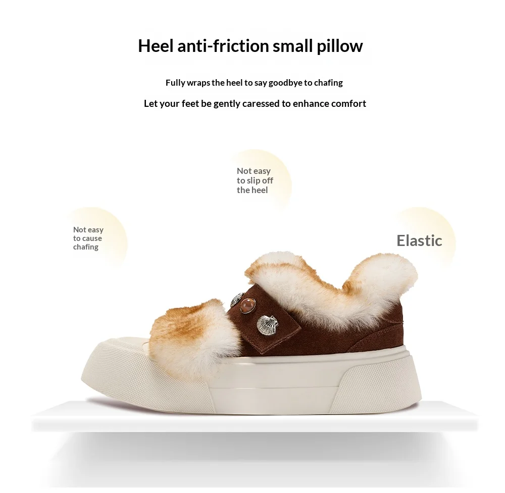 Autumn and winter new round-toe suede real wool thick-soled casual sneakers daily large size small size flat warm women’s boots