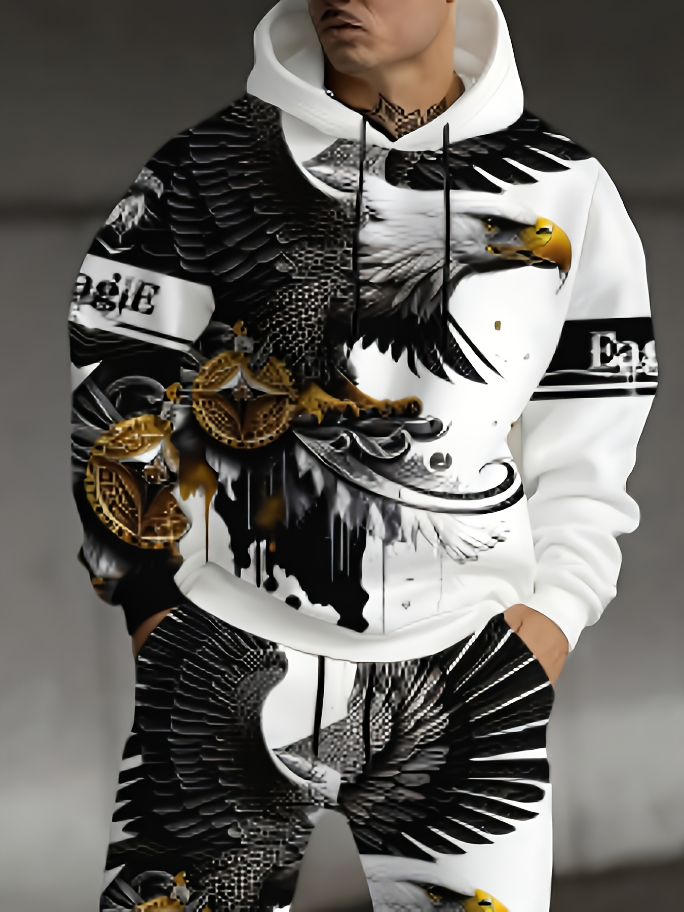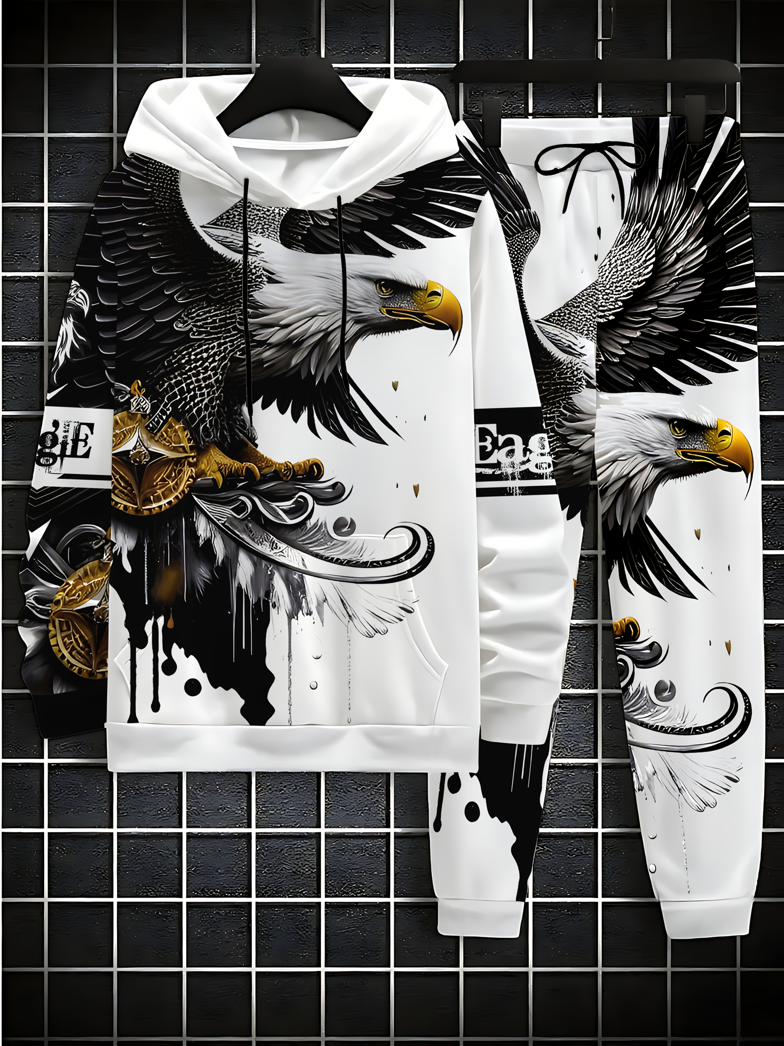 Autumn Casual 3D Print Animal Eagle, Cool Style Long Sleeved Hooded Sweatshirt, Casual Sports Pants, Men’s Sports Pants, Hooded Sports Pants Twoiece Set