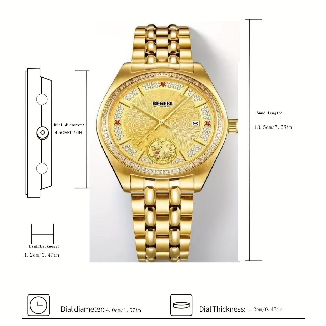 BEGEEL Men’S Mechanical Watch – Fully Automatic, Luminous, Business Style, Stainless Steel Case & Band, Round Dial with Date Display, Ideal for Christmas & Thanksgiving Gifts, Business Watch|Luminous Watch|Durable Watch, Without Battery