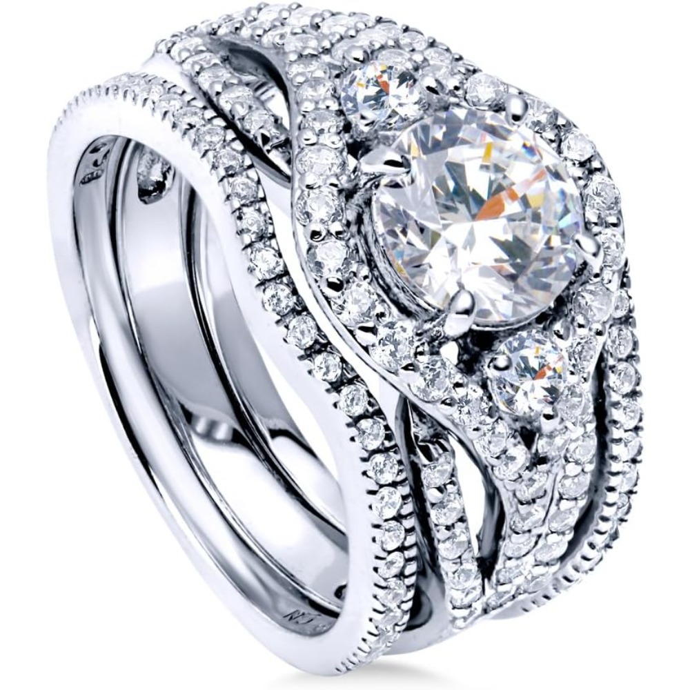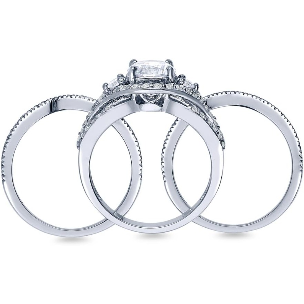 The Sterling Silver 3-Stone Cubic Zirconia Set is a masterclass in fine-jewelry detailing and flexible design.
