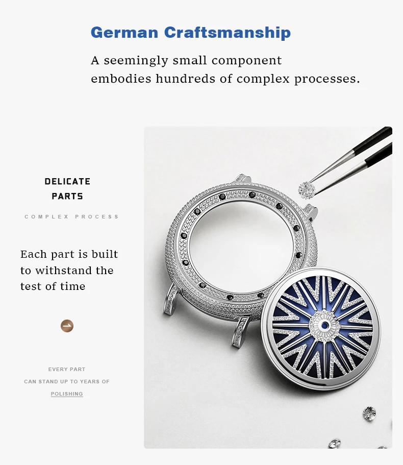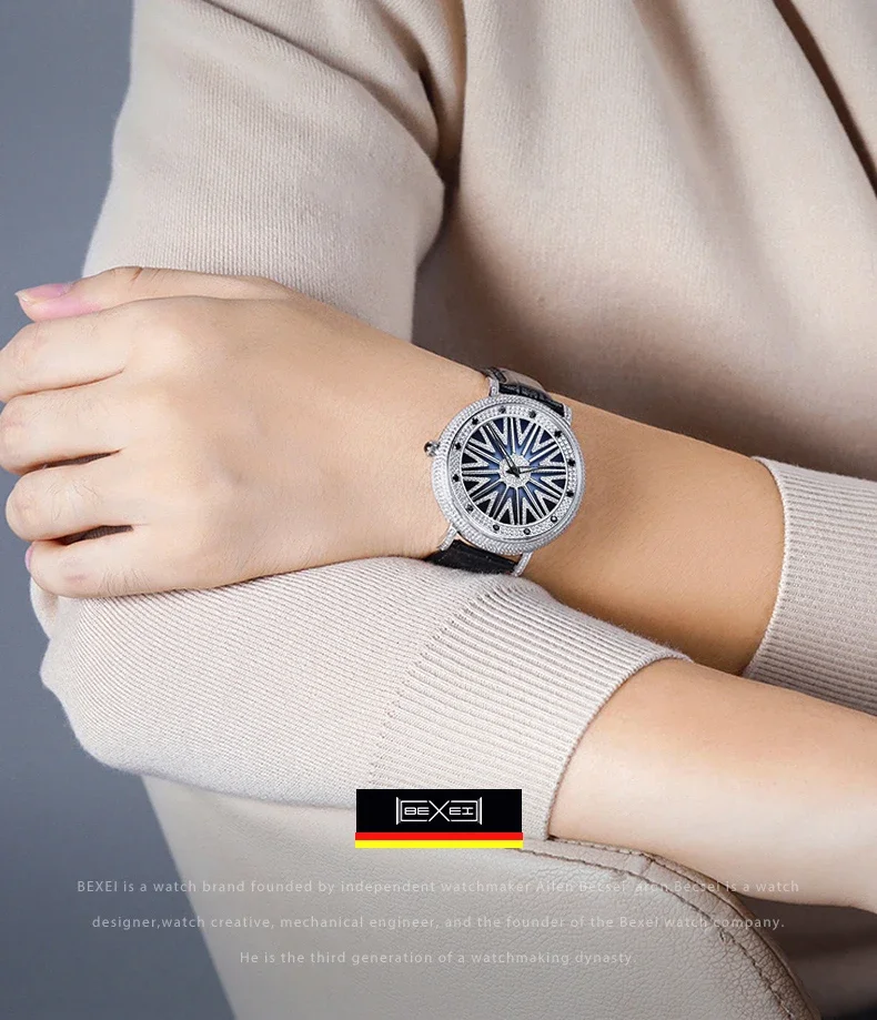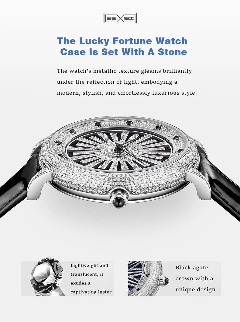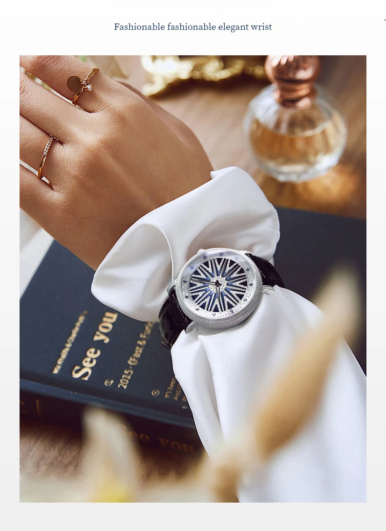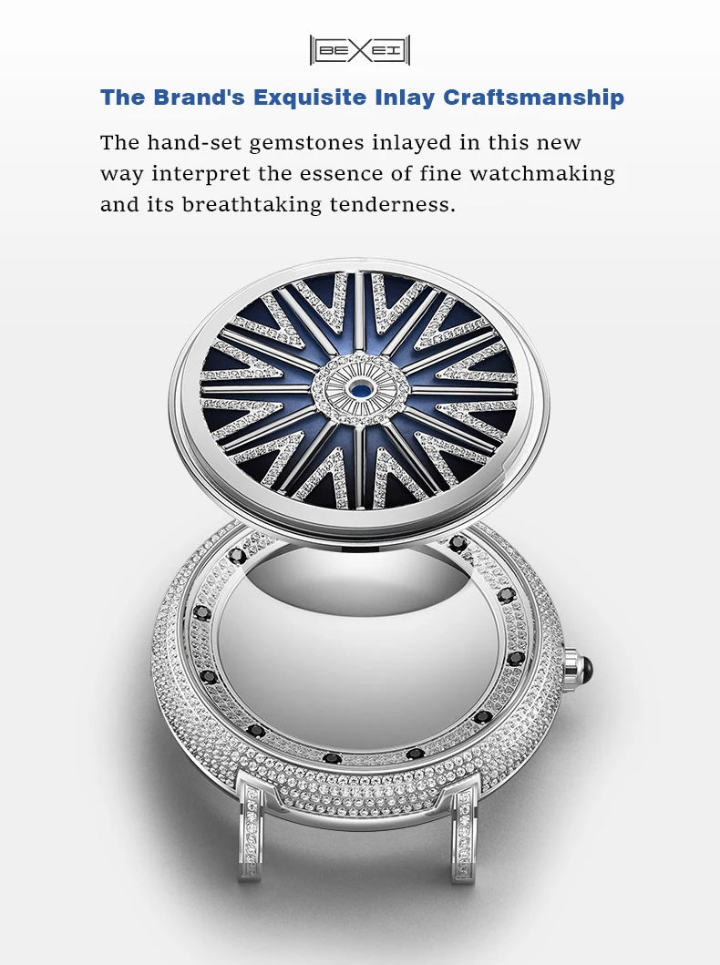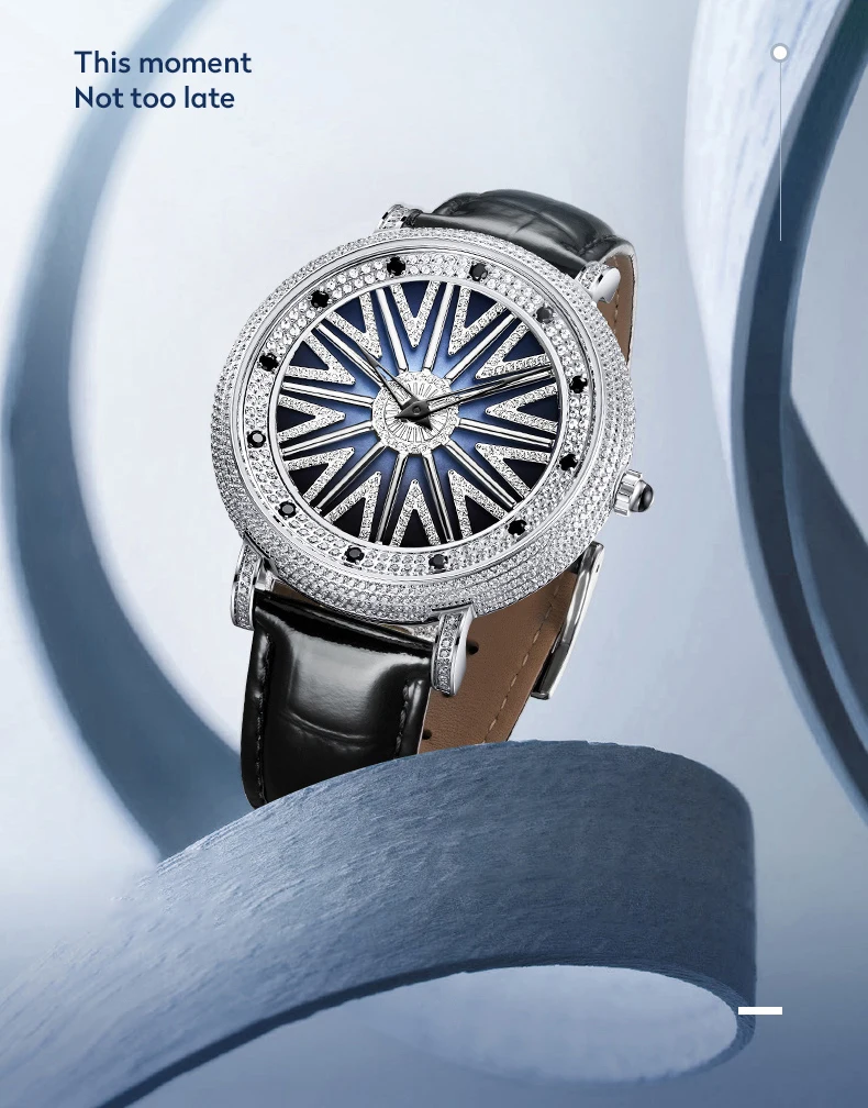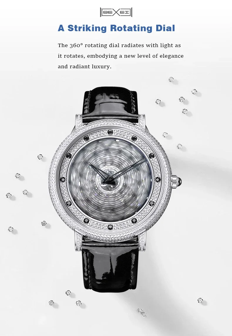 The 360° rotating dial radiates with light as it rotates, showcasing shimmering luxury and a new take on elegance.