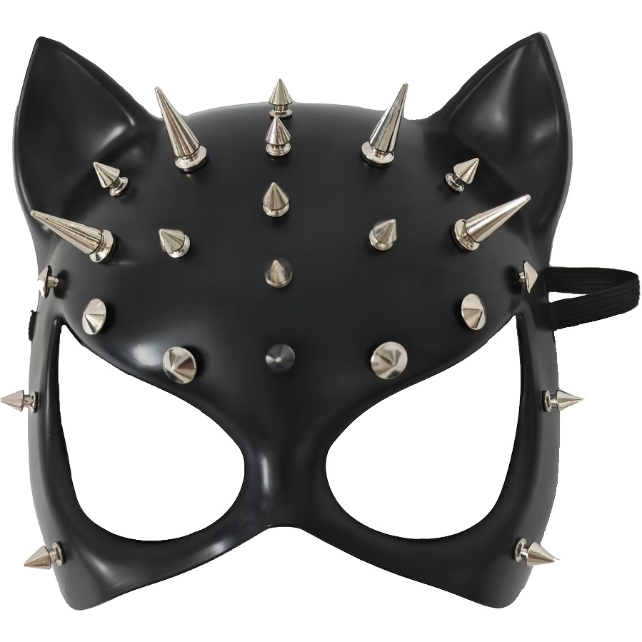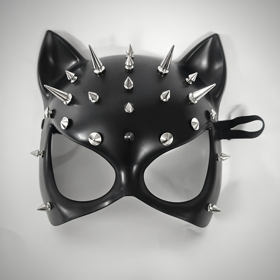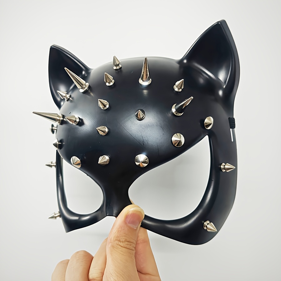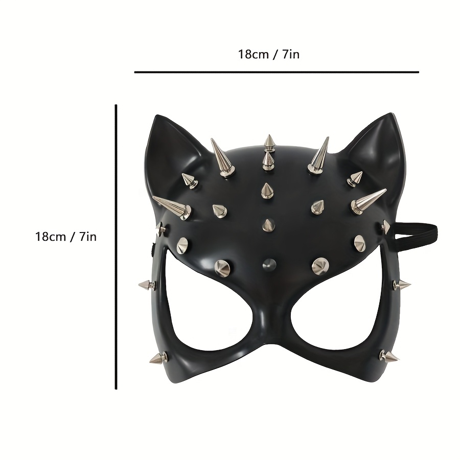 Black Cat Mask Punk Studded Half Face Mask – Gothic Studded Punk Half Face Mask with Studded for Halloween, Carnival & Cosplay – Edgy Costume Accessory for & (No Feathers) – Wearable Mask Suitable for Parties & Events
