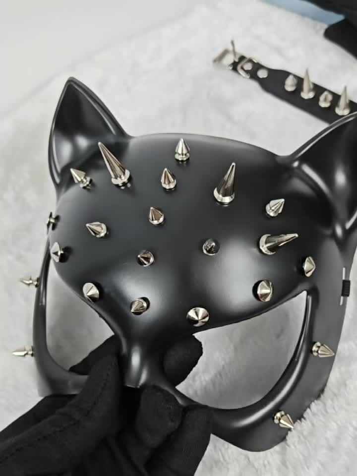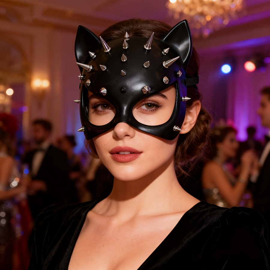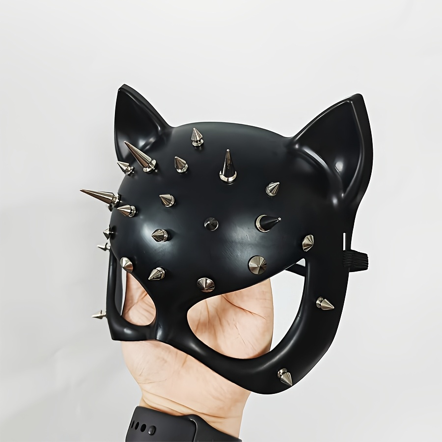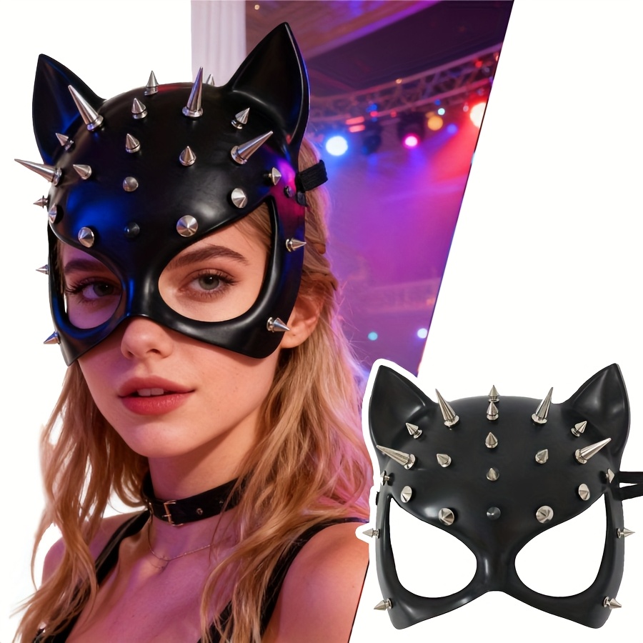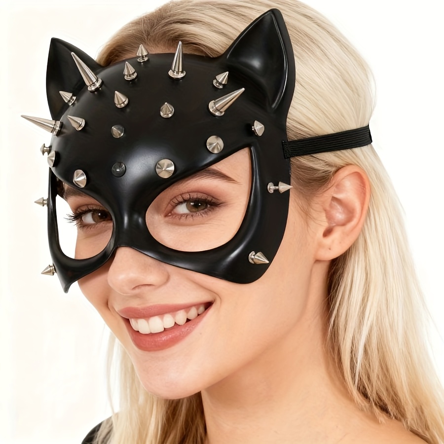 Black Cat Mask Punk Studded Half Face Mask – Gothic Studded Punk Half Face Mask with Studded for Halloween, Carnival & Cosplay – Edgy Costume Accessory for & (No Feathers) – Wearable Mask Suitable for Parties & Events
