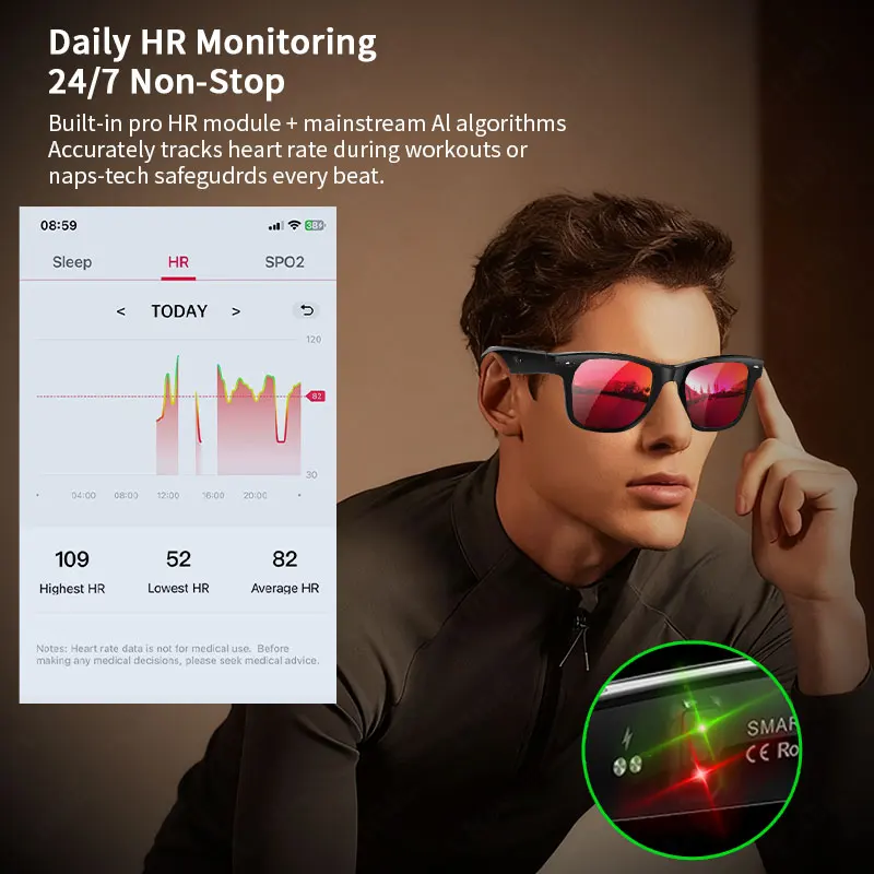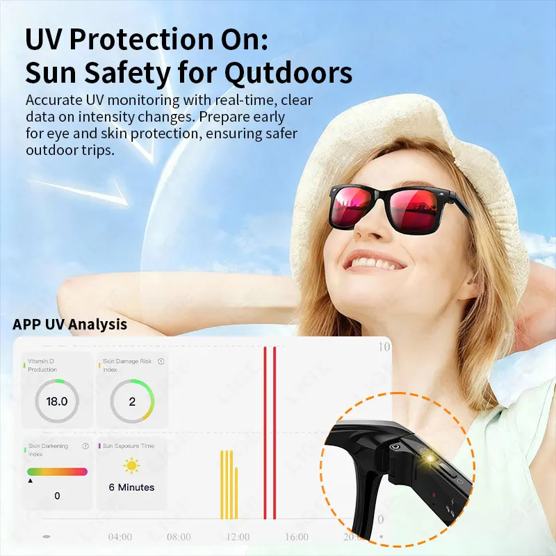 UV ultraviolet detection+heart rate and blood oxygen health management AI smart glasses