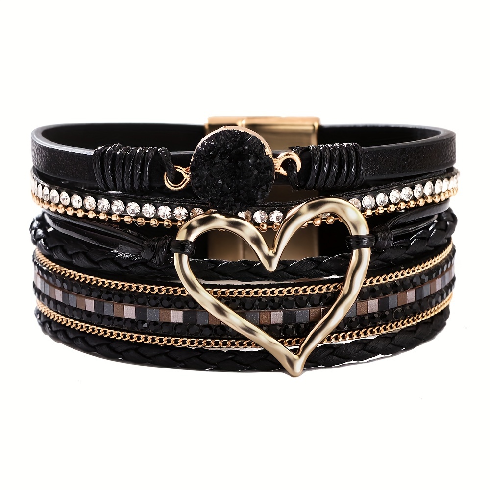 [Bohemian | Faux Leather] Bohemian Faux Leather Bracelet | Multi-Layer Hand-Woven Golden Big Heart Ladies Fashion
