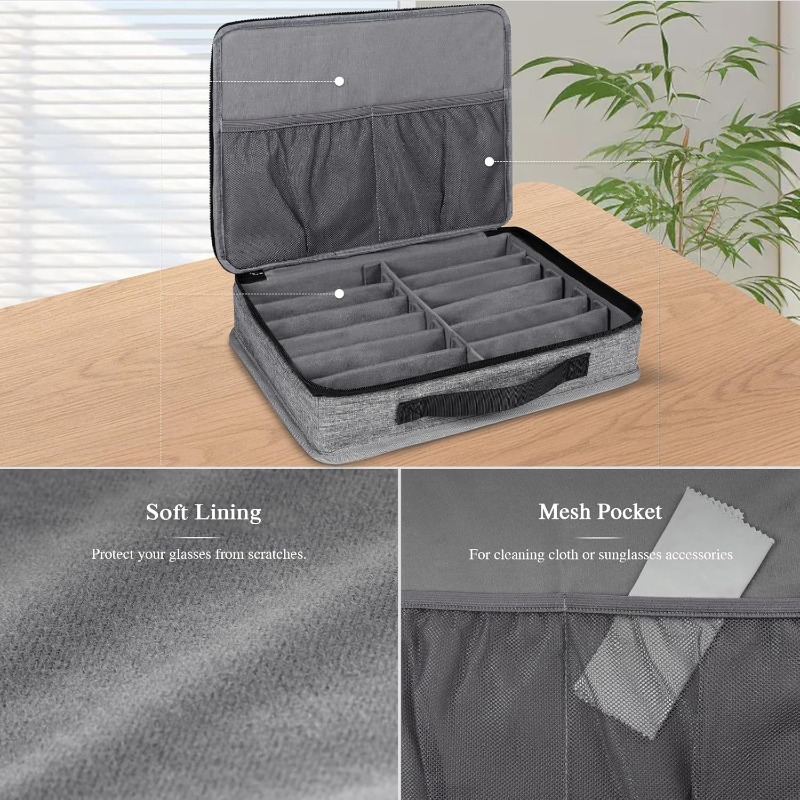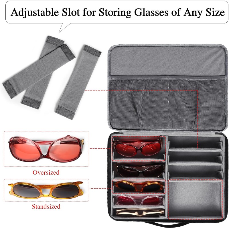 Bukere Sunglasses Organizer Case Adjustable Slots for Multiple Pairs Travel Eyeglasses Storage Box Glasses Holder