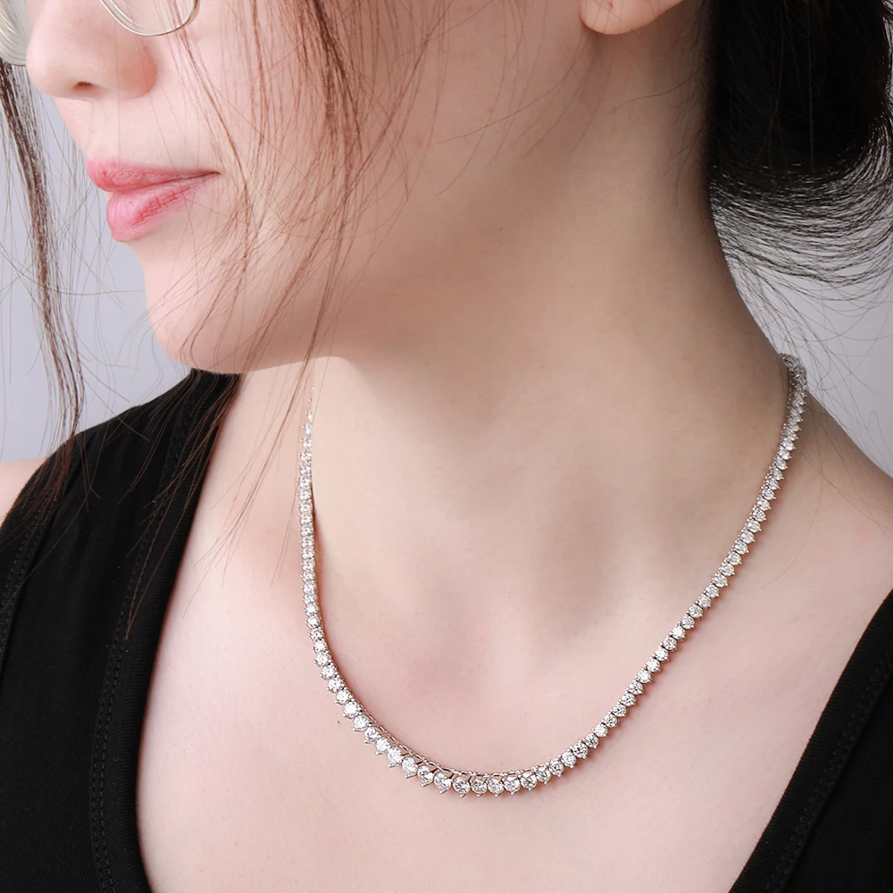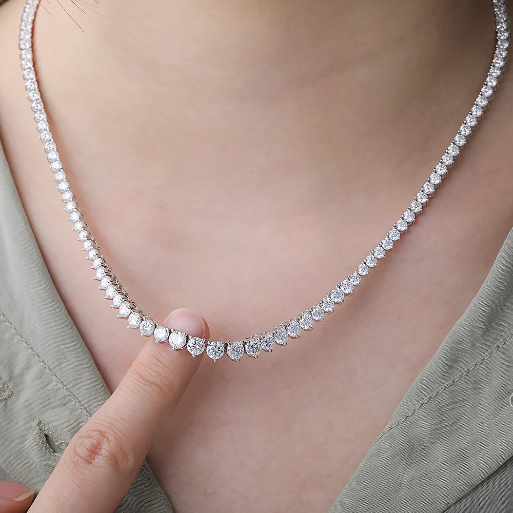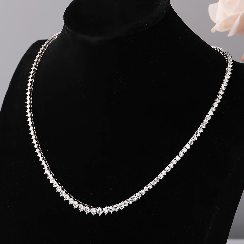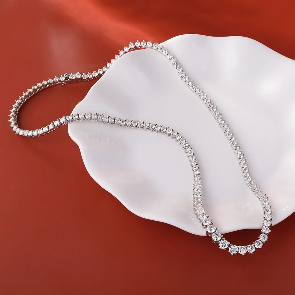 BXINY 3-Claw Gradient All Moissanite Tennis Necklace S925 Silver GRA Certified 3-4.5mm Lab Diamond for Women Chains Gift Jewelry