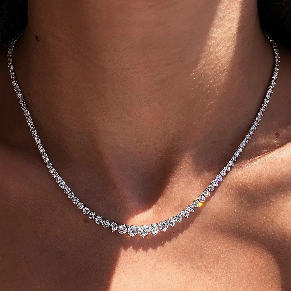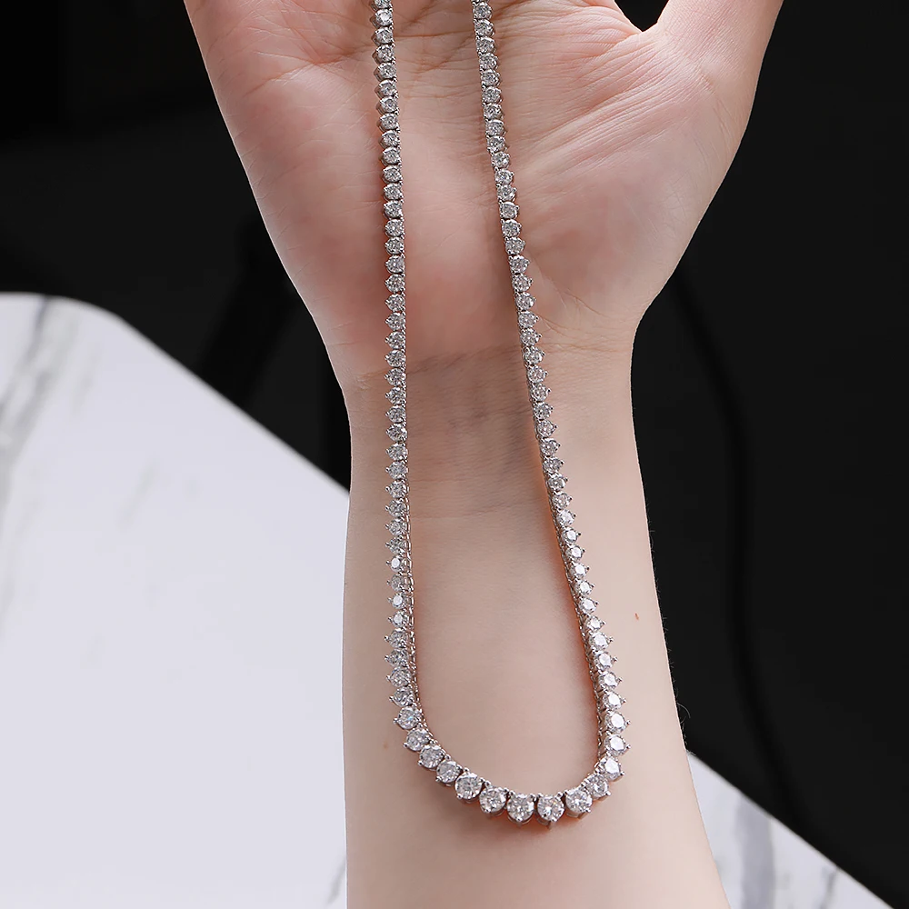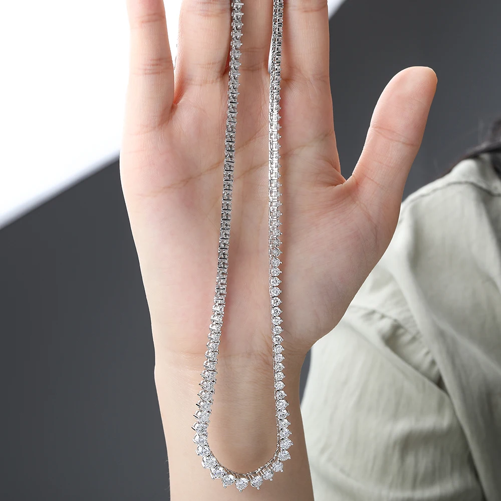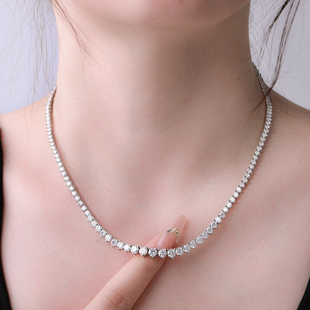 BXINY 3-Claw Gradient All Moissanite Tennis Necklace S925 Silver GRA Certified 3-4.5mm Lab Diamond for Women Chains Gift Jewelry